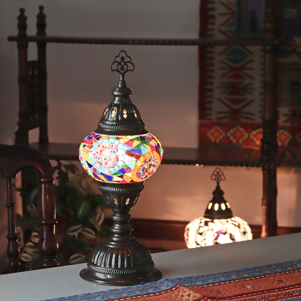 - トルコランプ モザイクテーブルランプ 直径13cm 全高36cm ミックスカラー