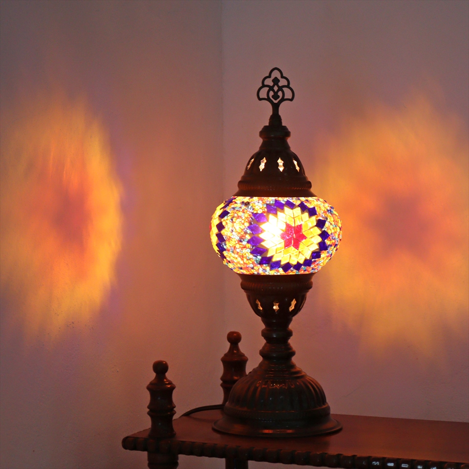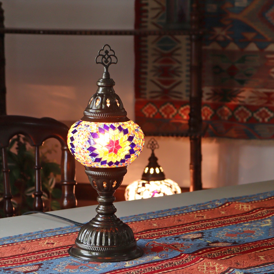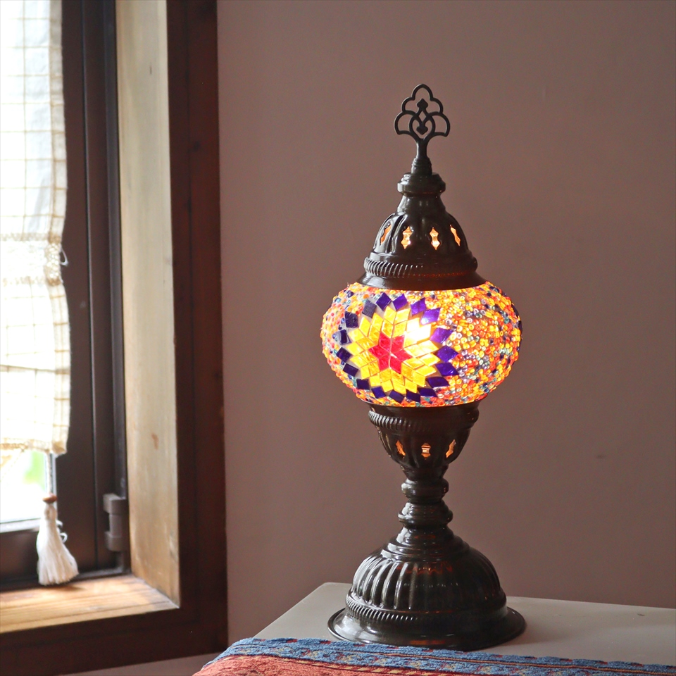 - トルコランプ モザイクテーブルランプ 直径13cm 全高36cm ミックスカラー