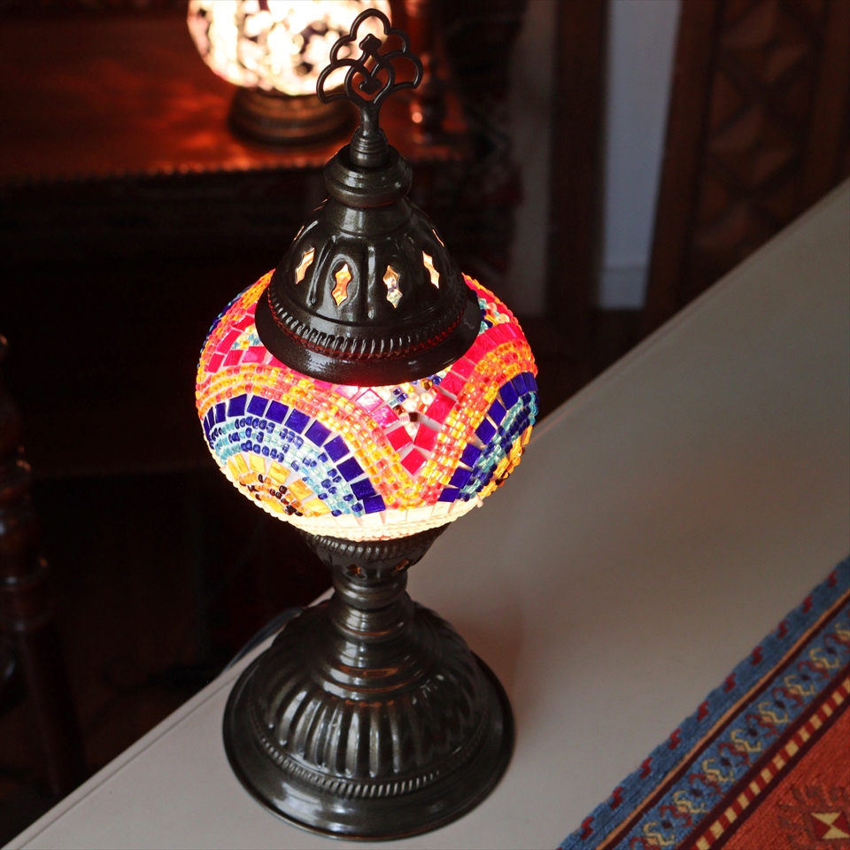 - トルコランプ モザイクテーブルランプ 直径13cm 全高36cm ミックスカラー