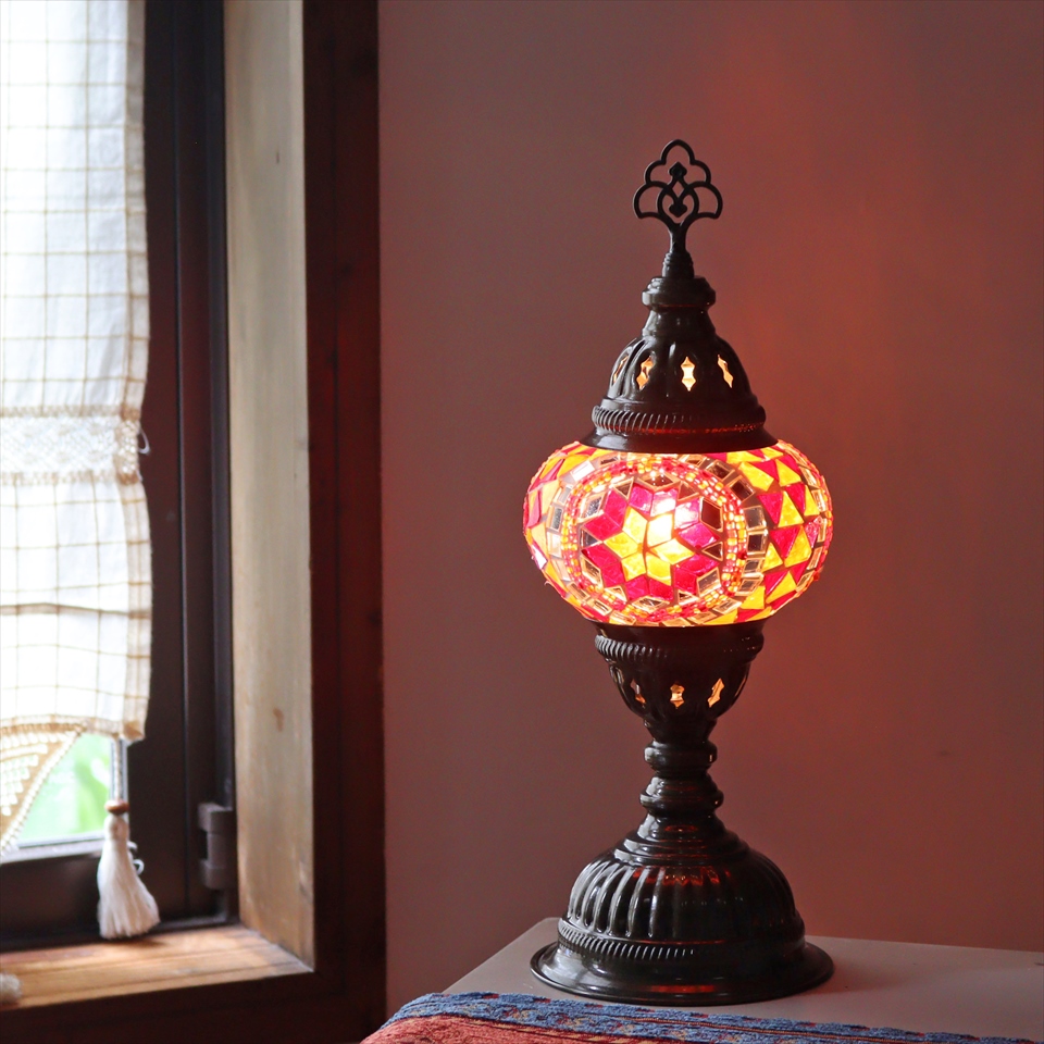 - トルコランプ モザイクテーブルランプ 直径13cm 全高36cm オレンジ