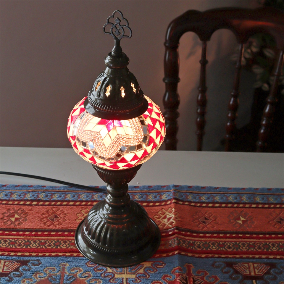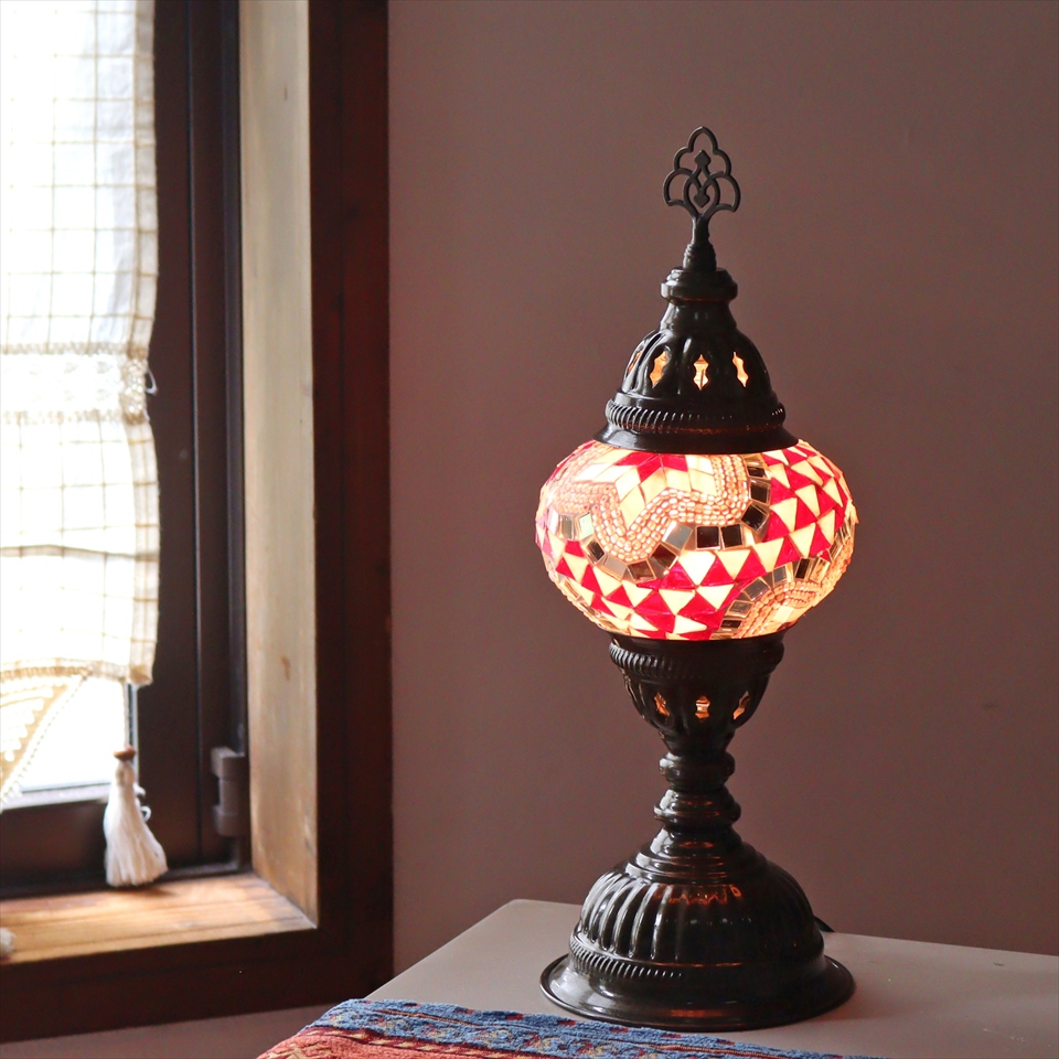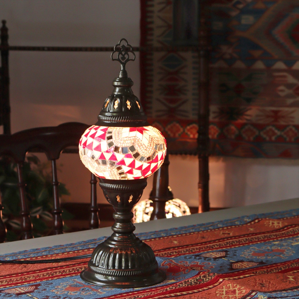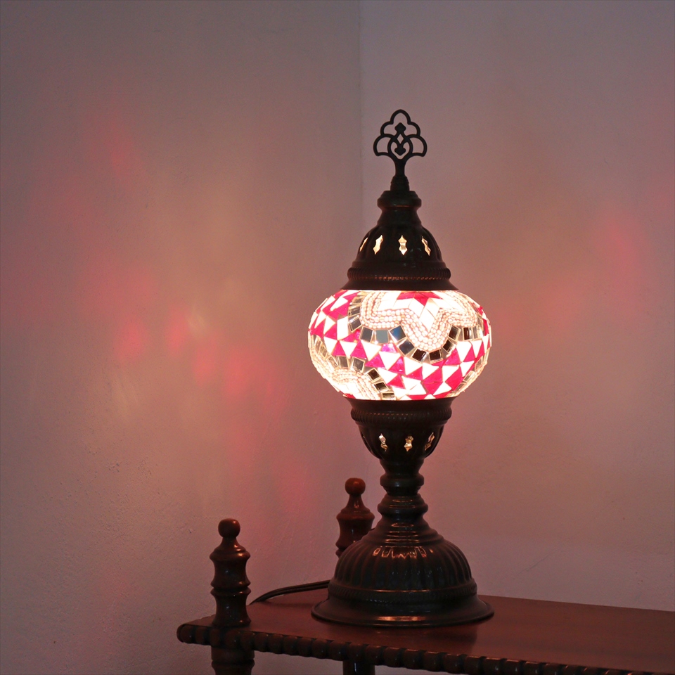- トルコランプ モザイクテーブルランプ 直径13cm 全高36cm ピンク