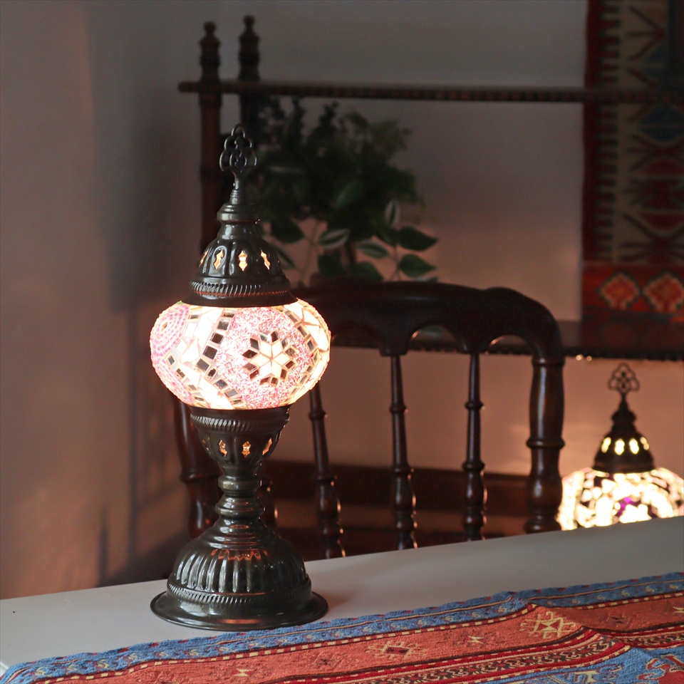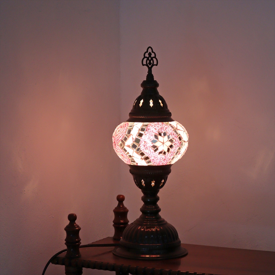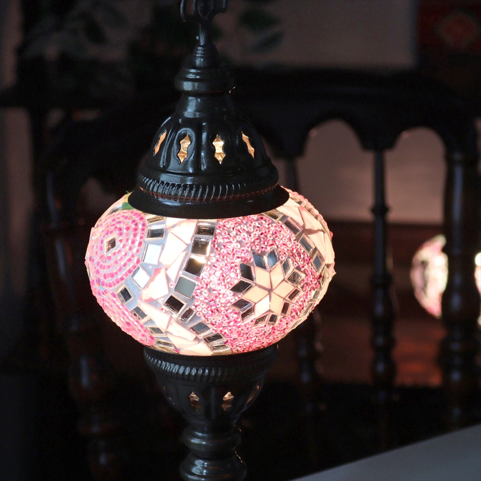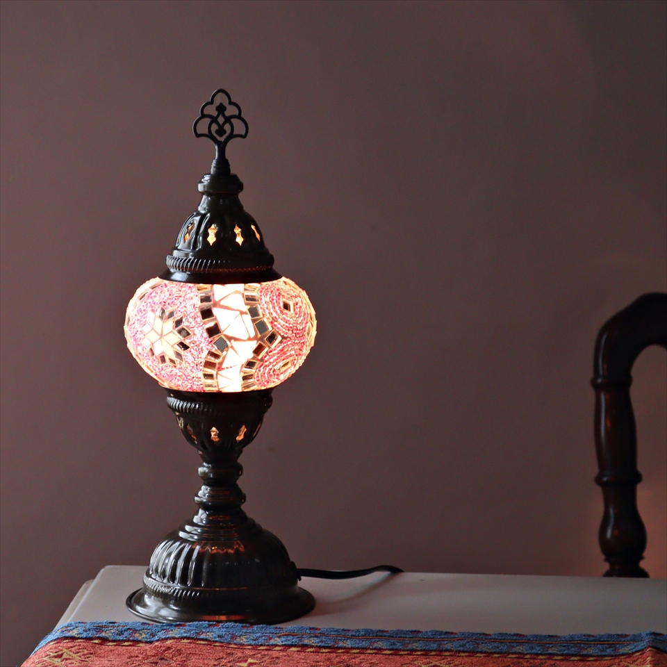 - トルコランプ モザイクテーブルランプ 直径13cm 全高36cm ピンク