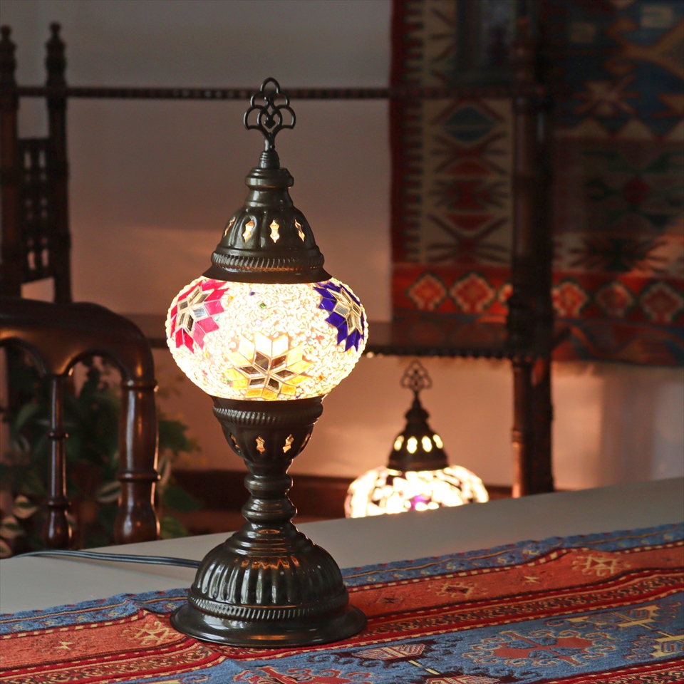 トルコランプ モザイクテーブルランプ 直径13cm 全高36cm ホワイト/カラフルフラワー