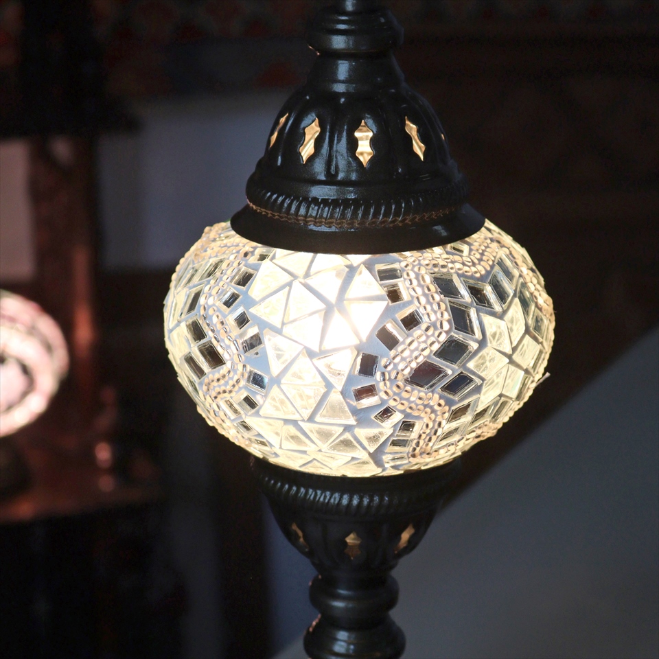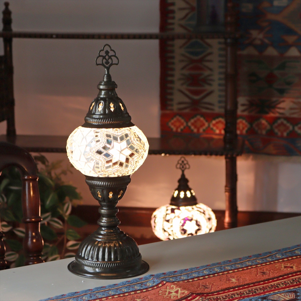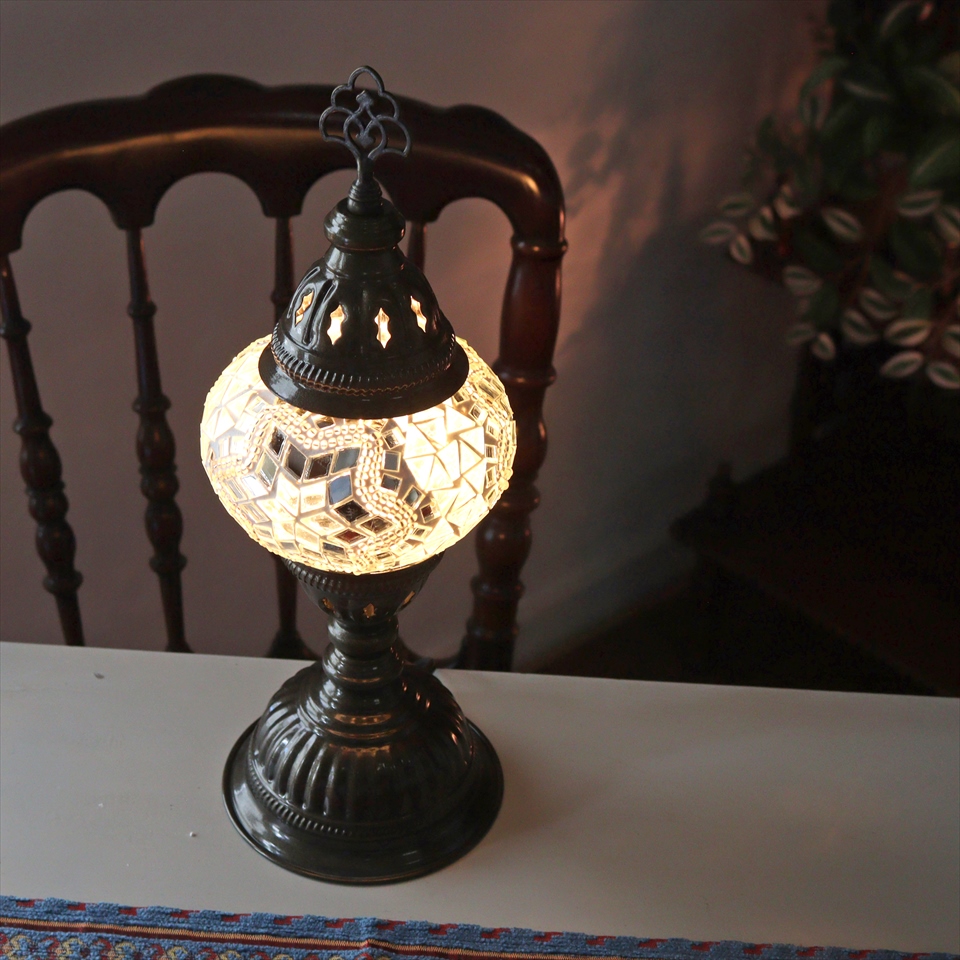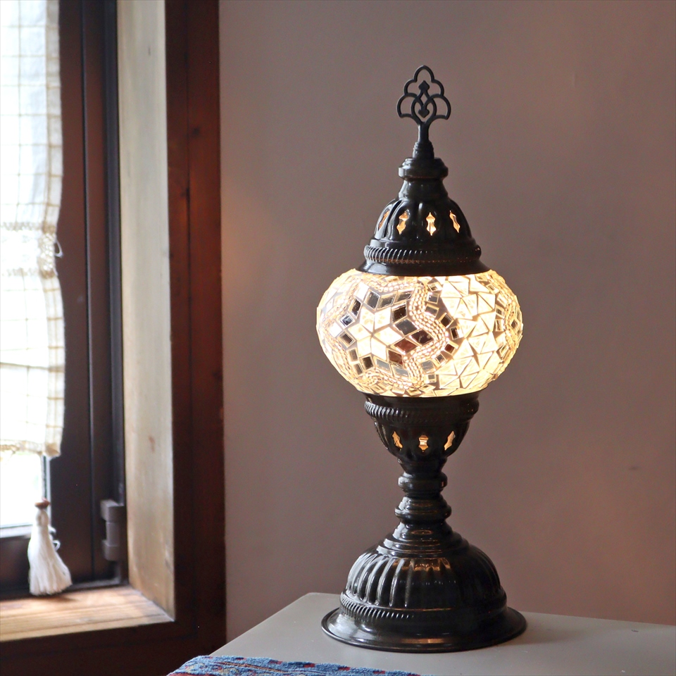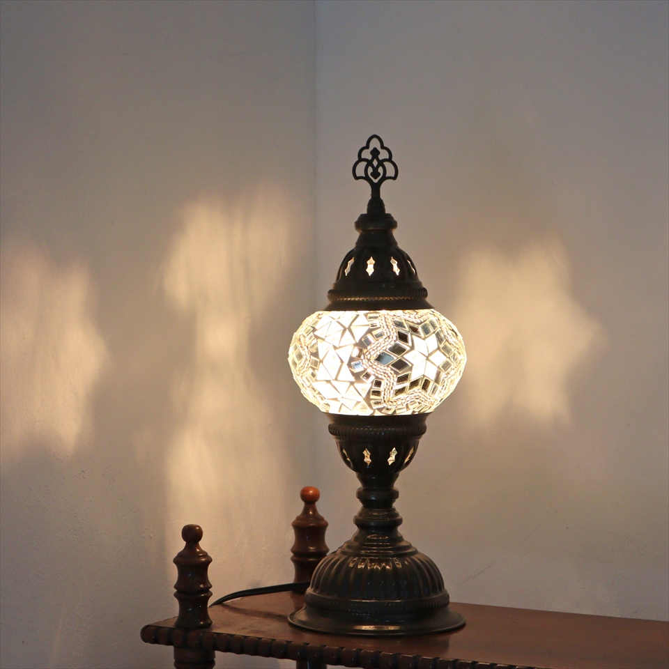 トルコランプ モザイクテーブルランプ 直径13cm 全高36cm ホワイト