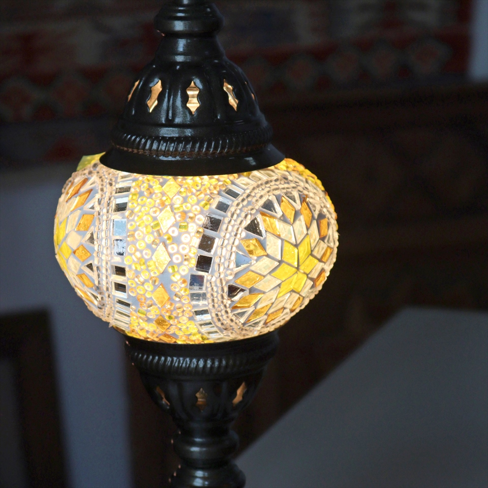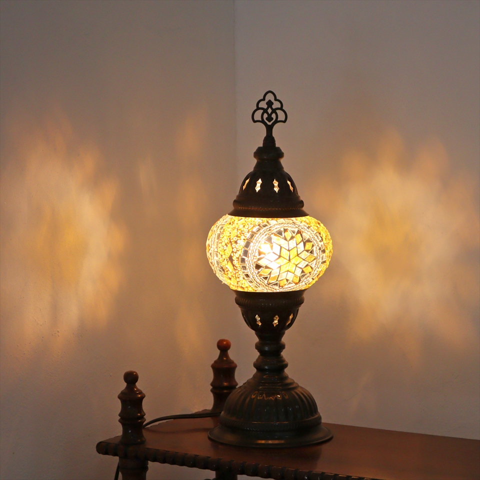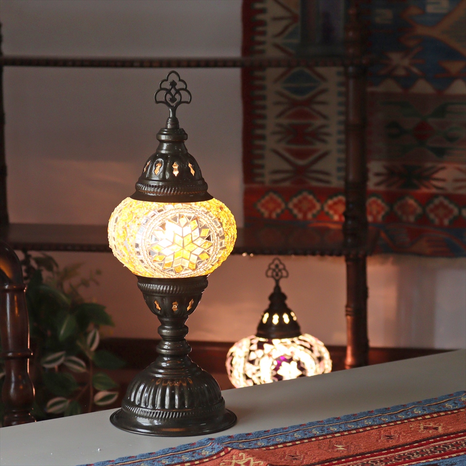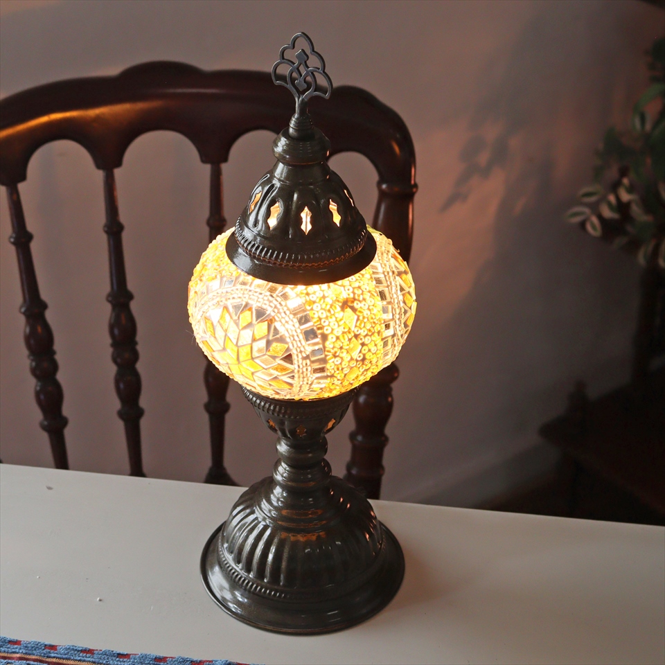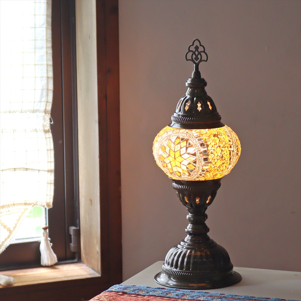 - トルコランプ モザイクテーブルランプ 直径13cm 全高36cm イエロー
