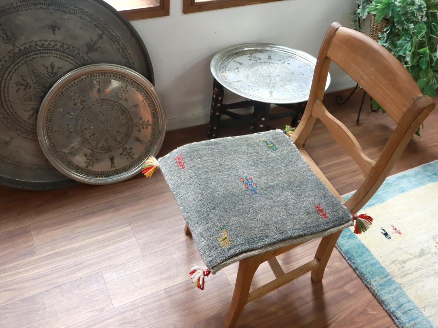 ギャッベ イラン産手織り 座布団サイズ 41x43cm グレー