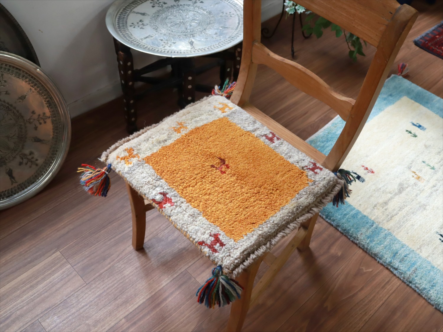 ギャッベ イラン産手織り 座布団サイズ 40x36cm イエロー ナチュラル