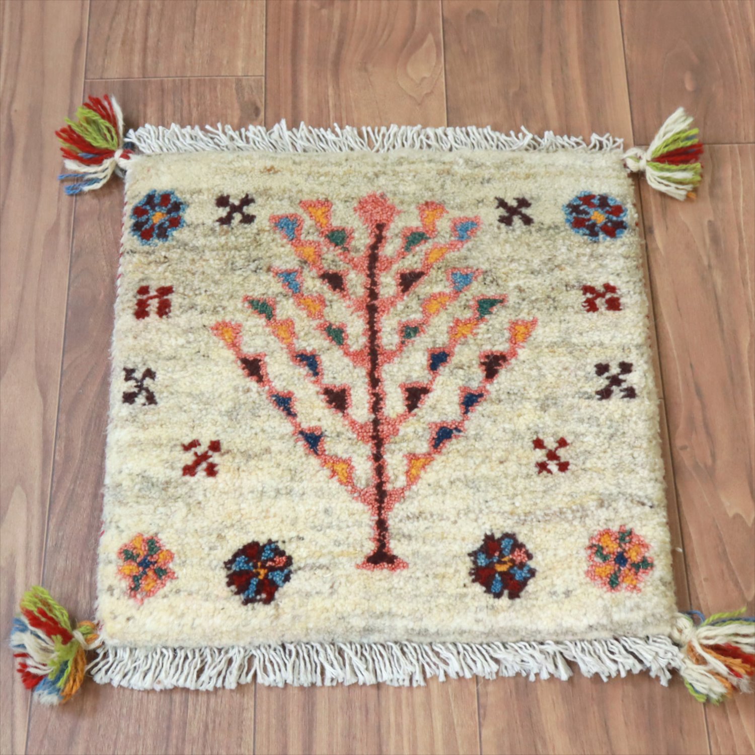 ギャッベ イラン産手織り 座布団サイズ 41x40cm ナチュラルアイボリー