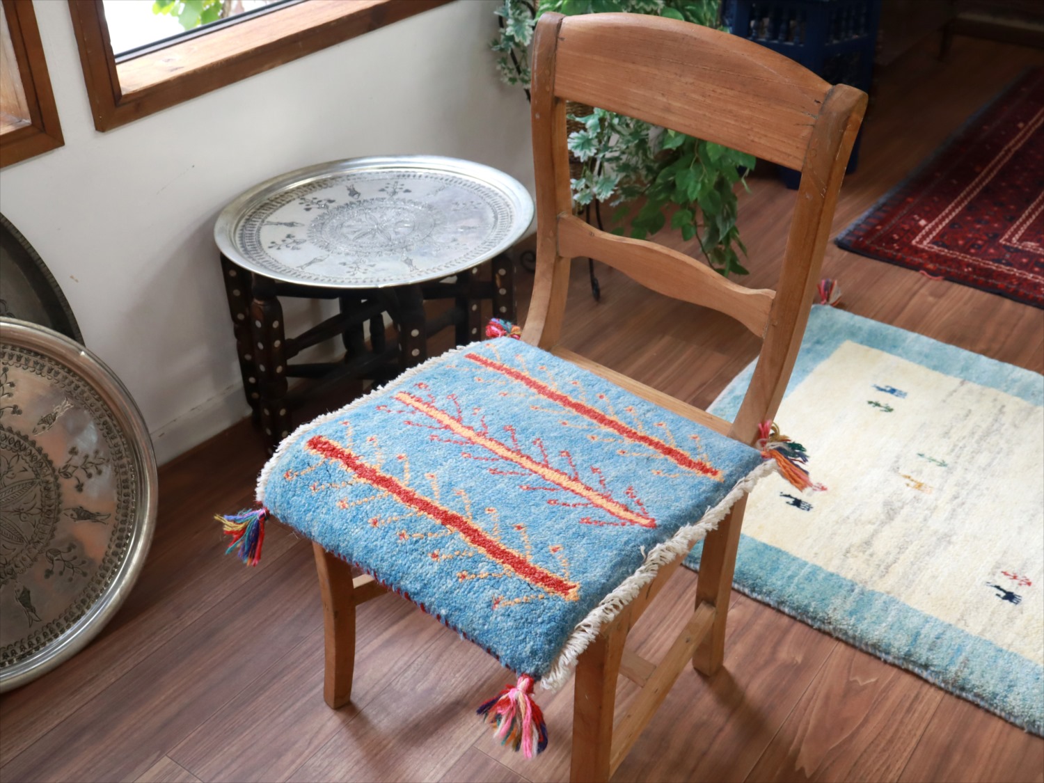 - ギャッベ イラン産手織り 座布団サイズ 40x40cm ブルー