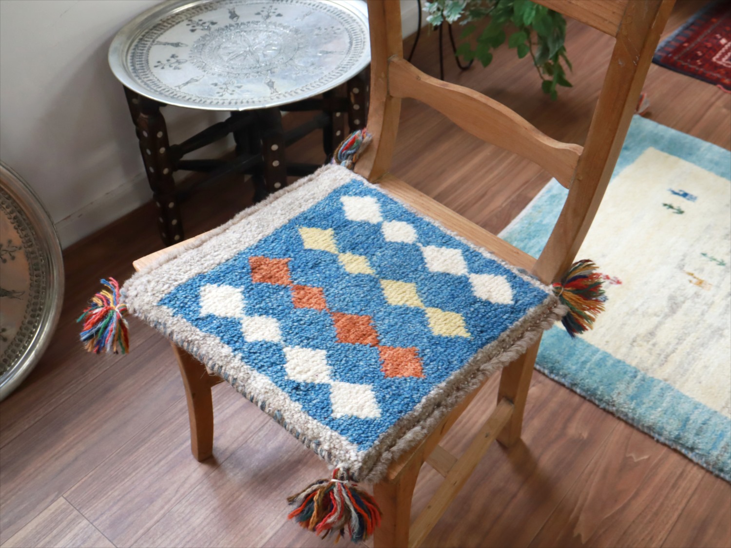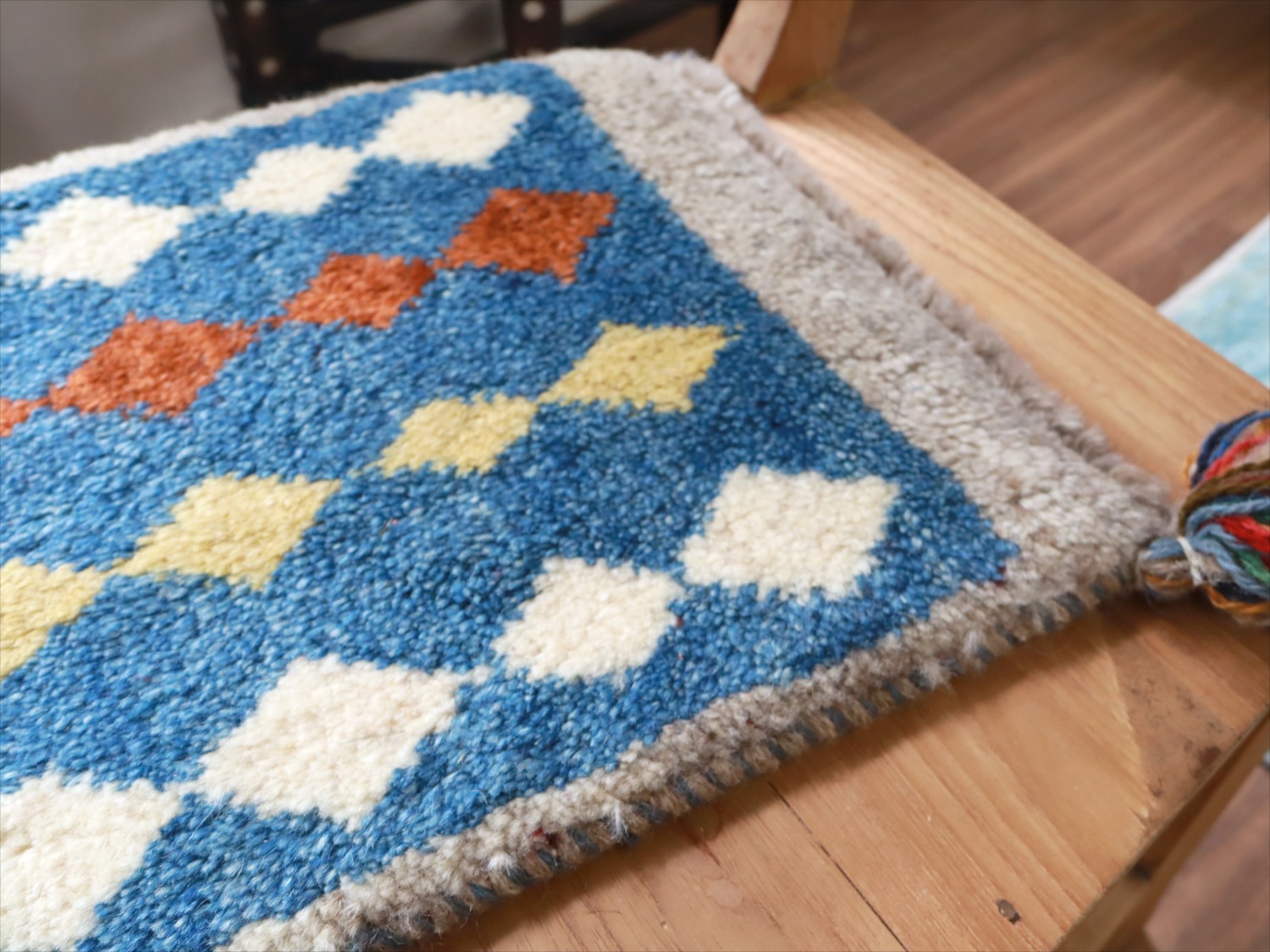 - 【15%OFF】ギャッベ イラン産手織り 座布団サイズ 37x36cm ブルー