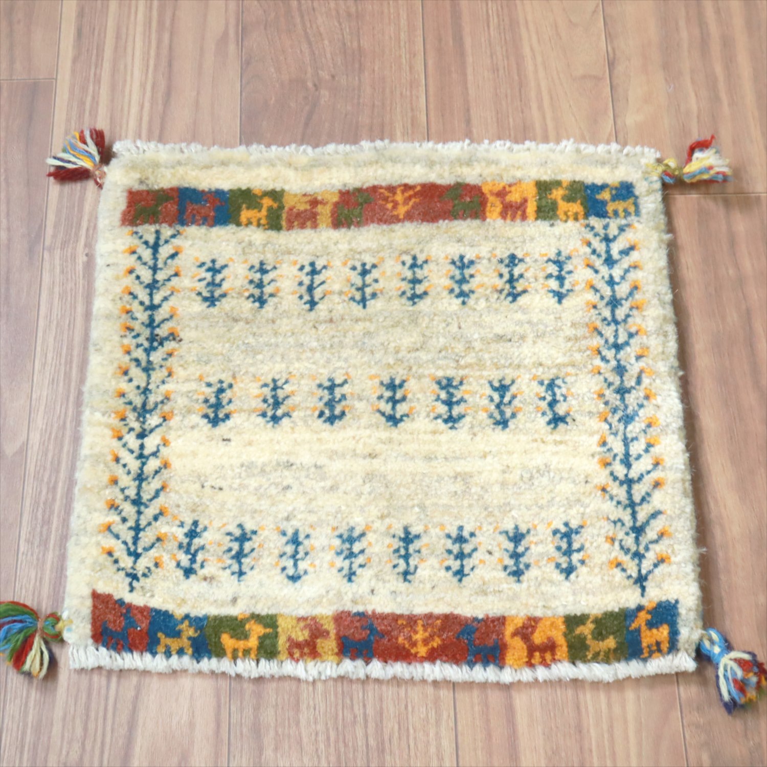 【15%OFF】ギャッベ イラン産手織り 座布団サイズ 38x39cm ナチュラルアイボリー
