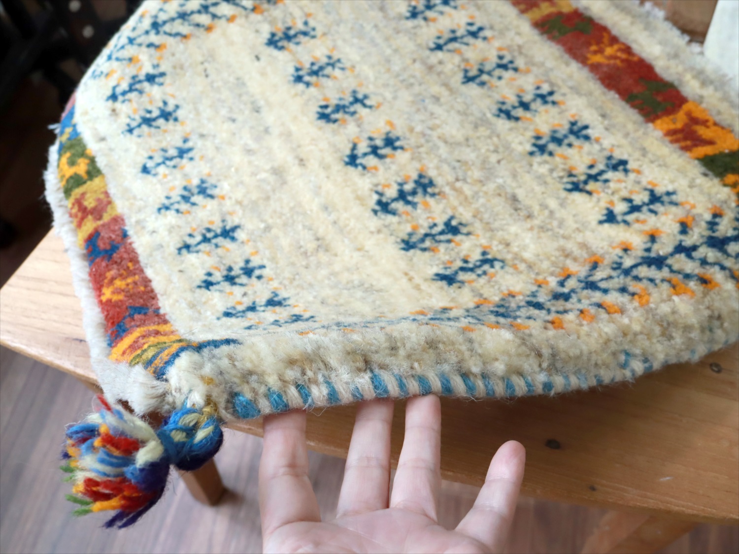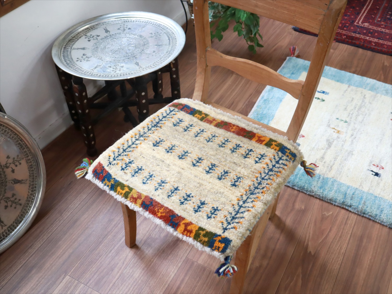- 【15%OFF】ギャッベ イラン産手織り 座布団サイズ 38x39cm ナチュラルアイボリー
