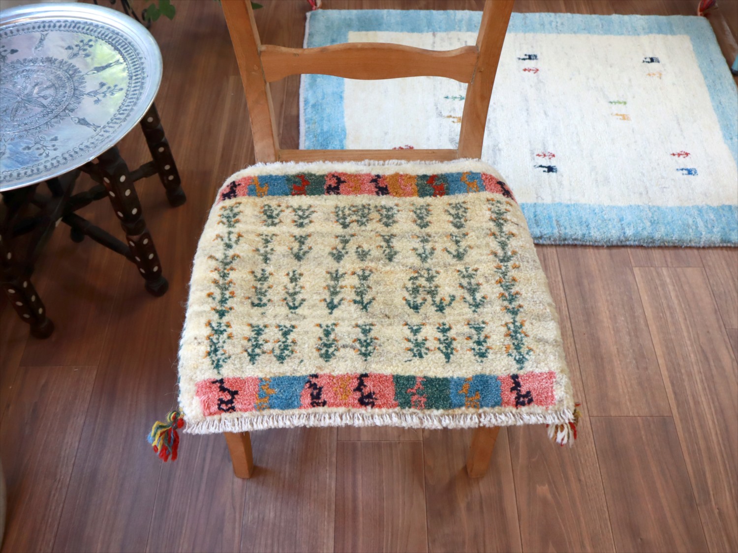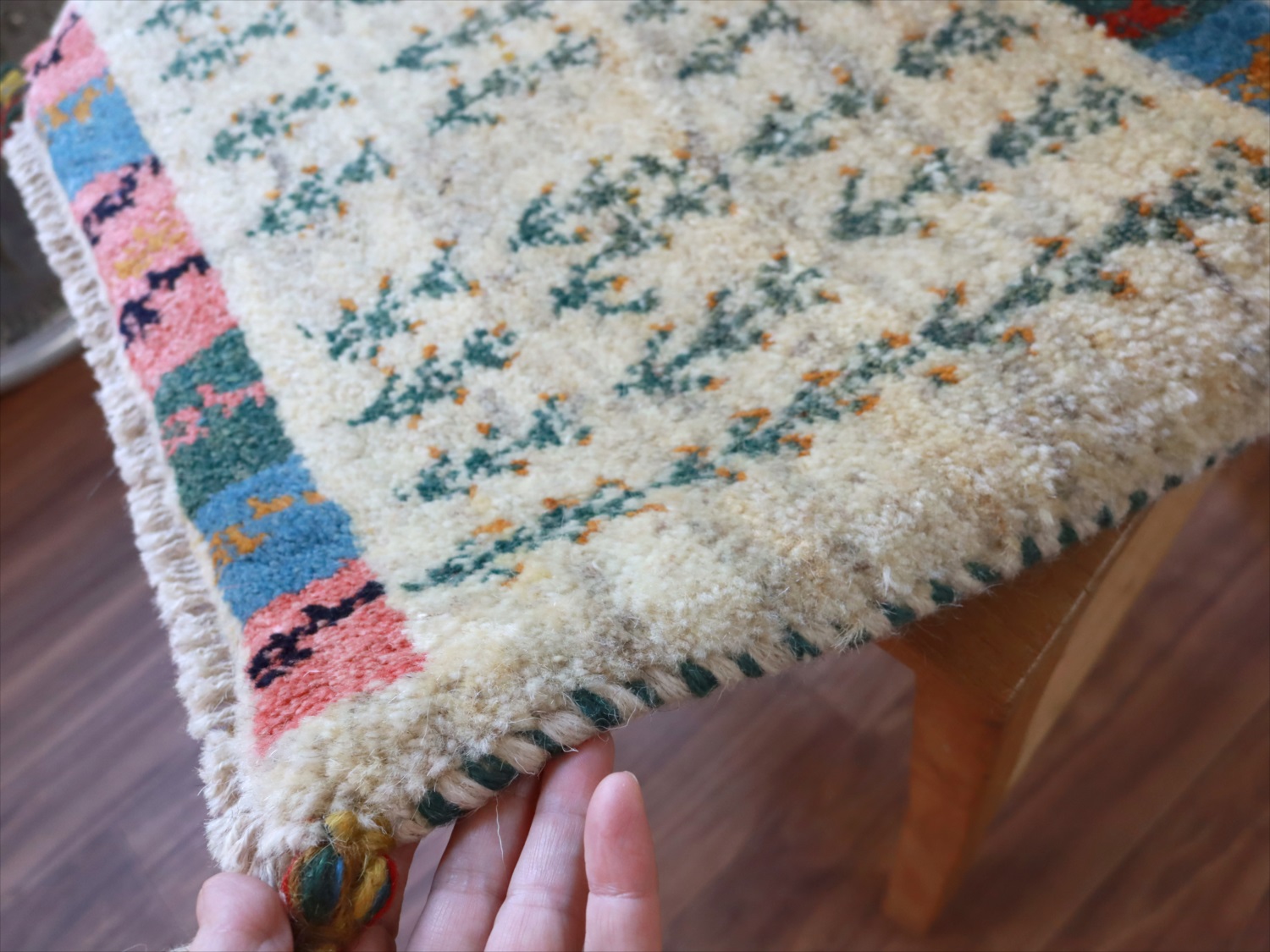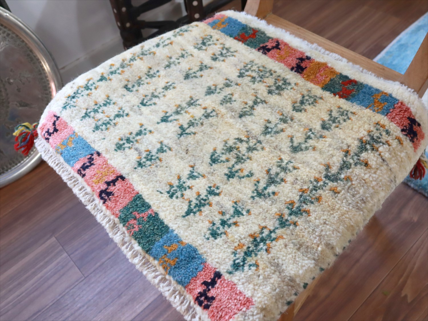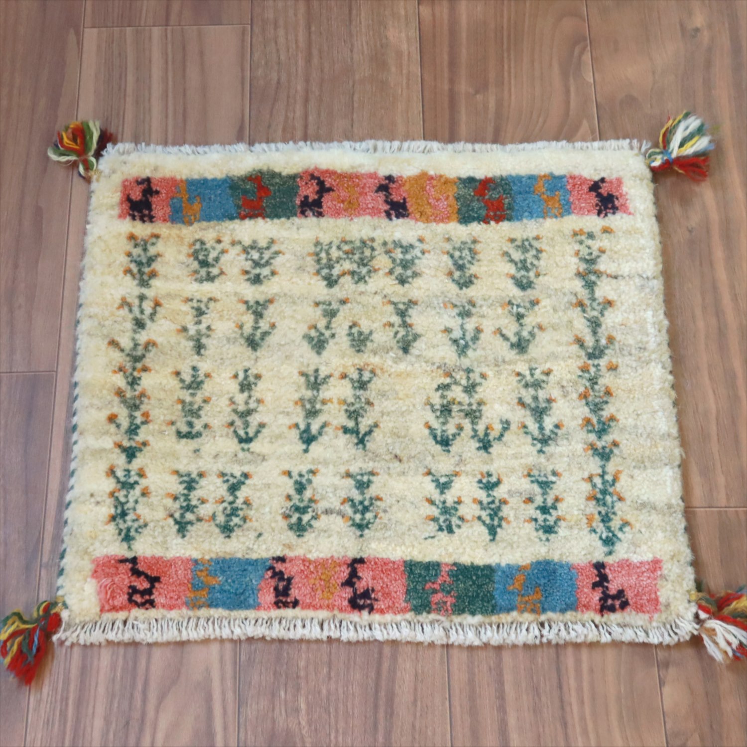 【15%OFF】ギャッベ イラン産手織り 座布団サイズ 39x47cm ナチュラルアイボリー