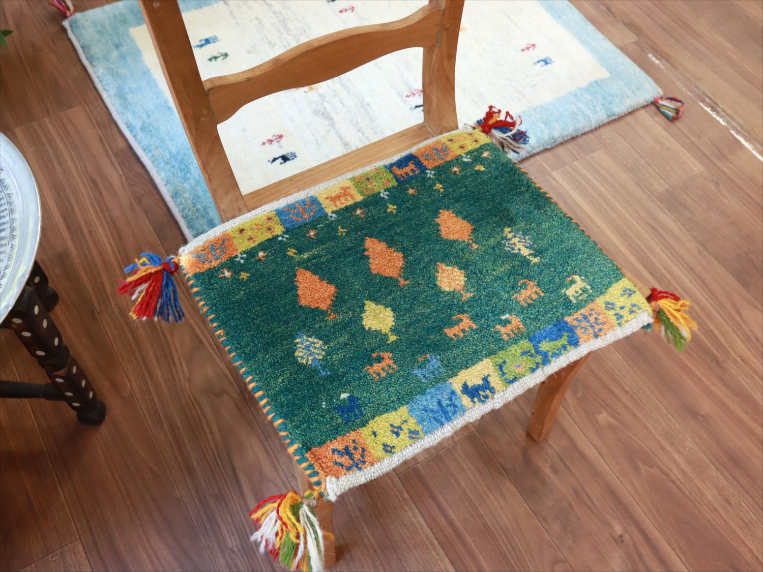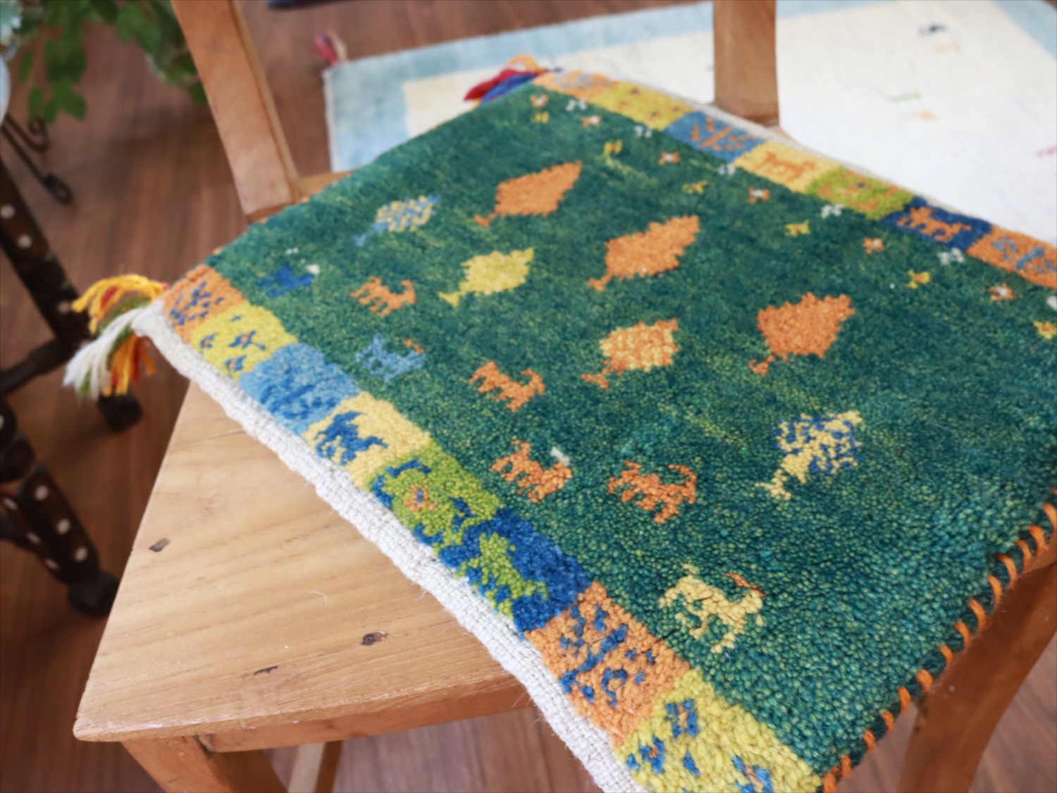 - 【15%OFF】ギャッベ イラン産手織り 座布団サイズ 38x43cm グリーン