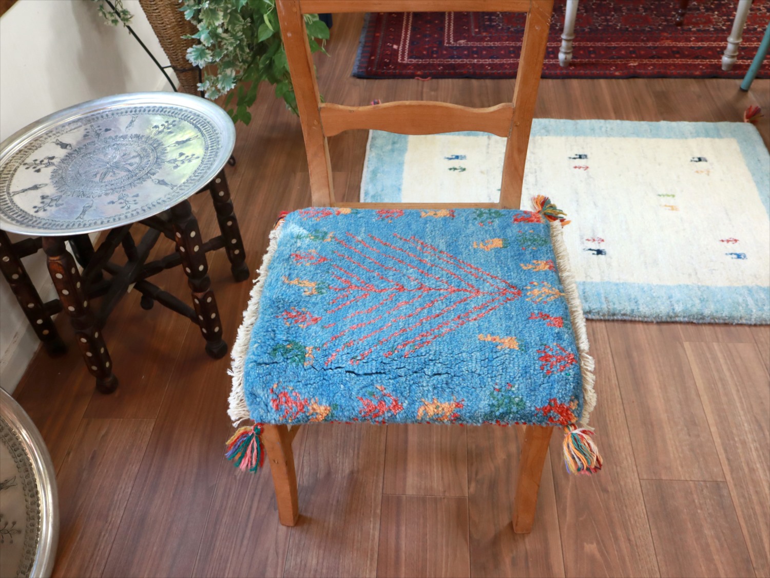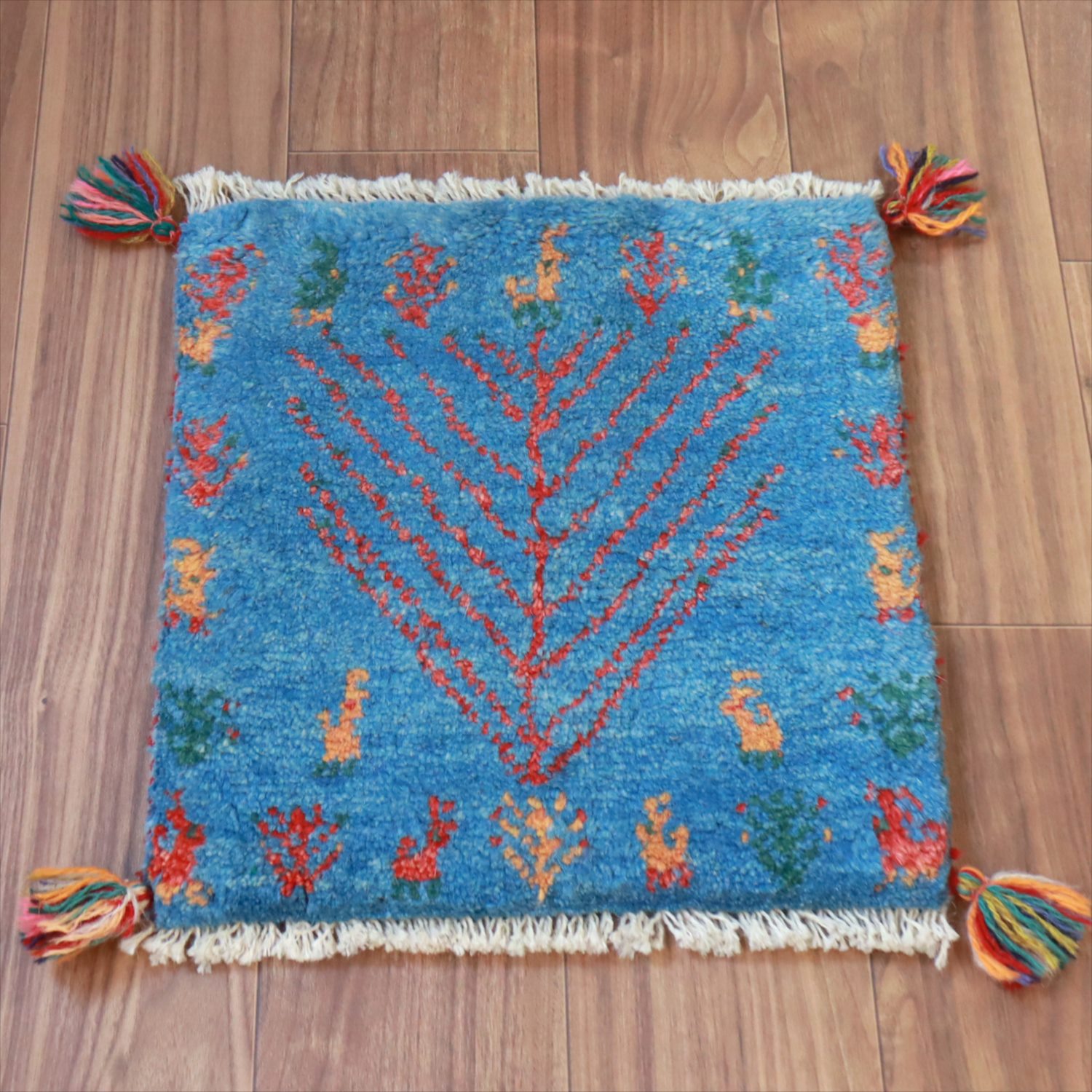 ギャッベ イラン産手織り 座布団サイズ 42x41cm ブルー
