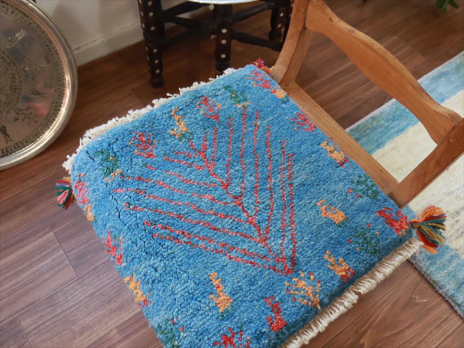 - ギャッベ イラン産手織り 座布団サイズ 42x41cm ブルー
