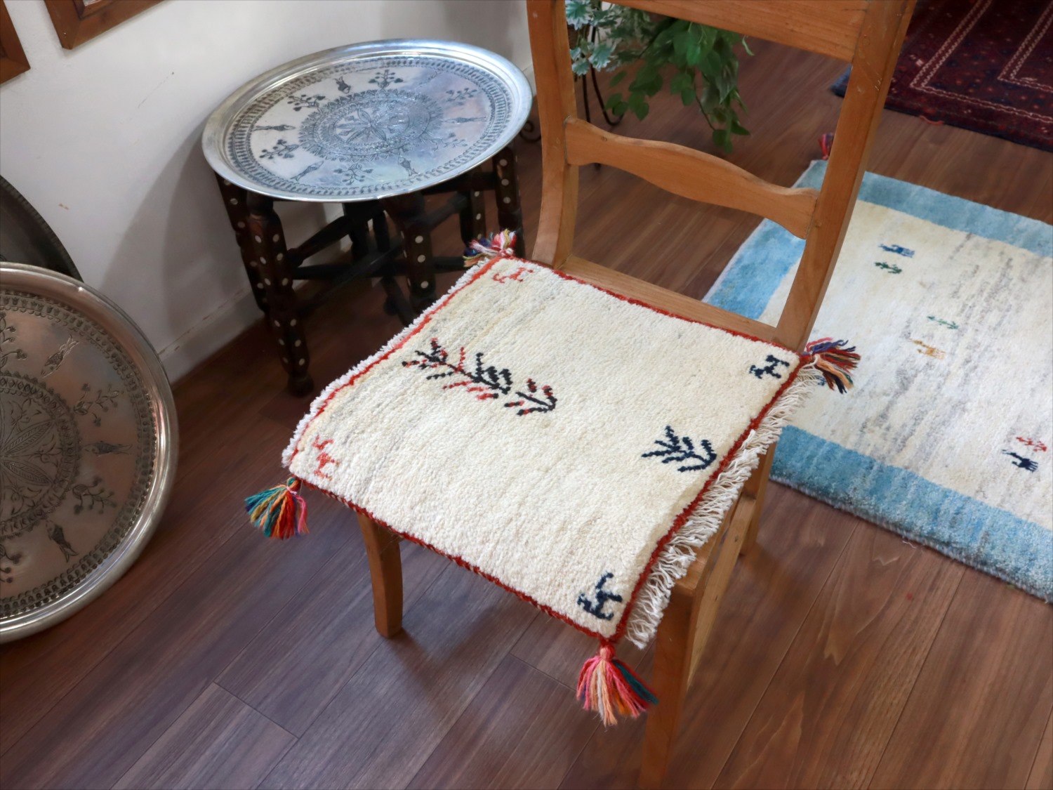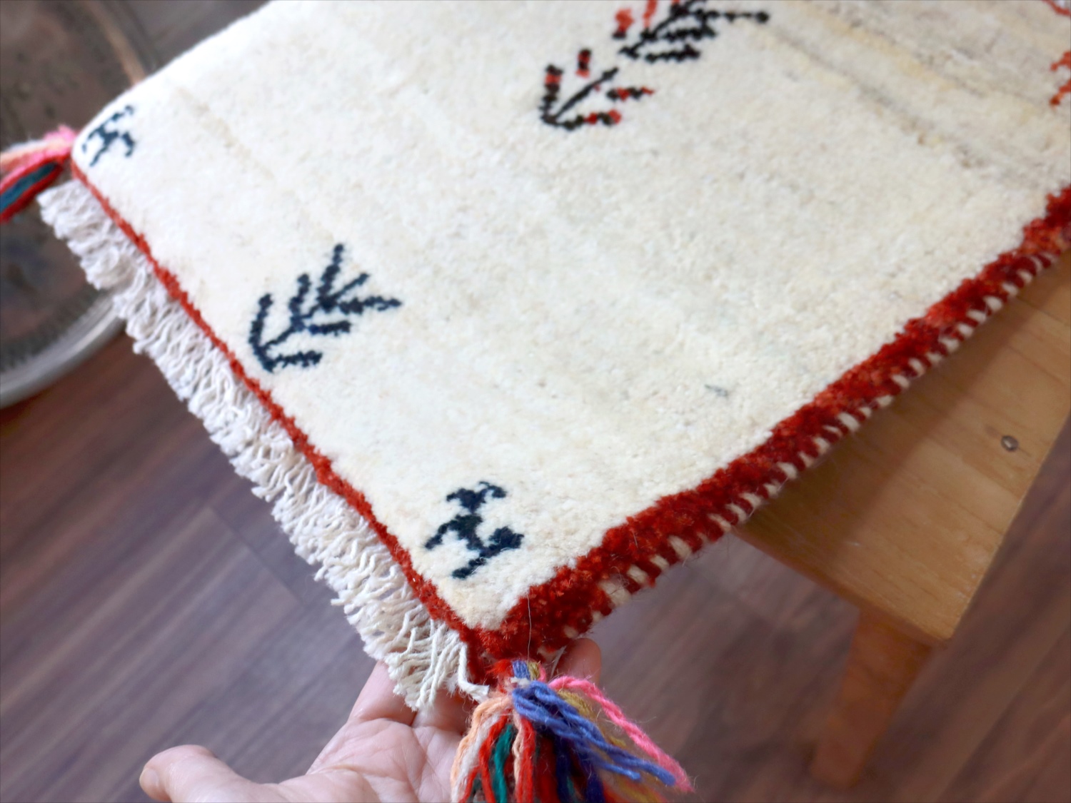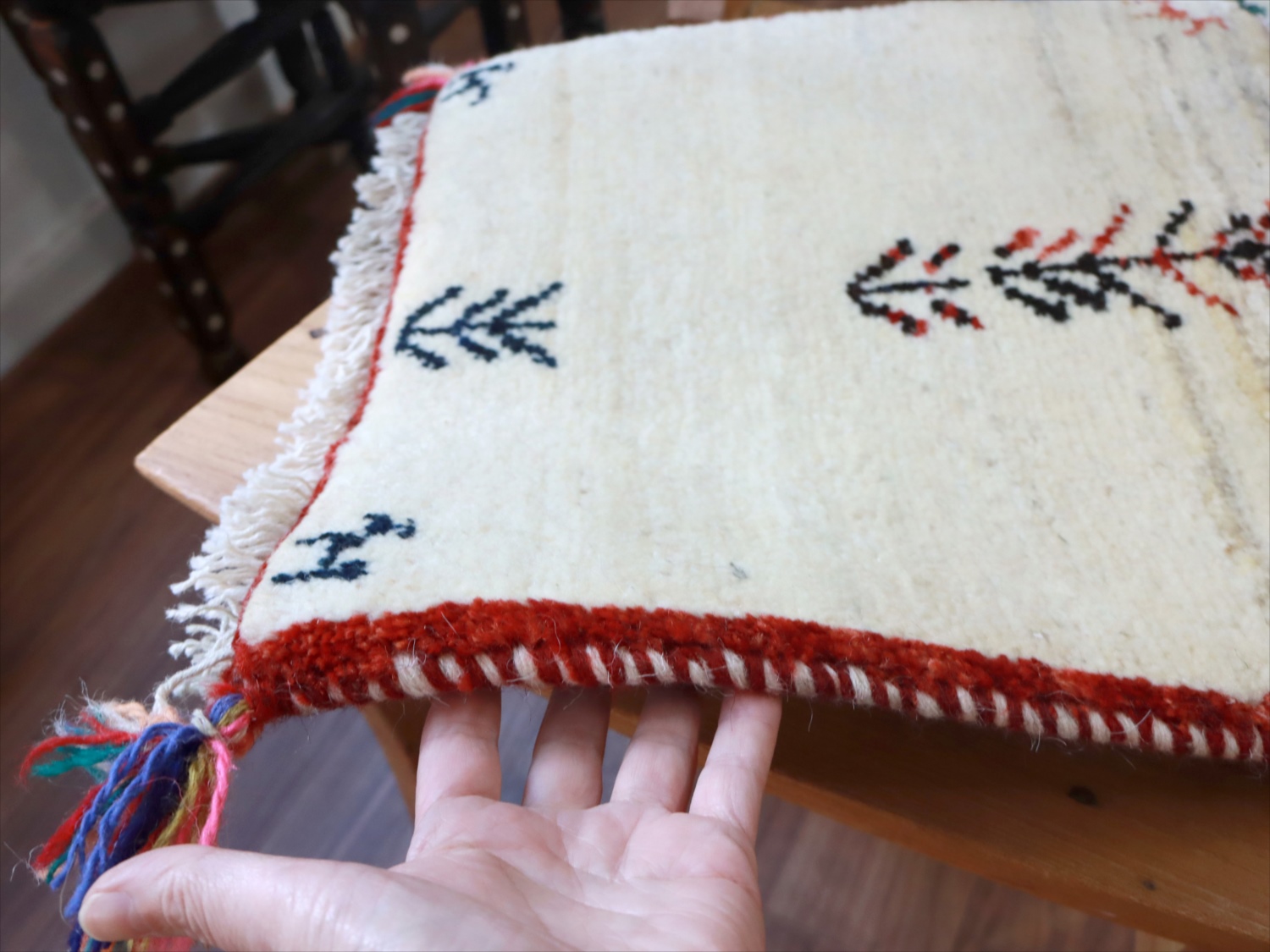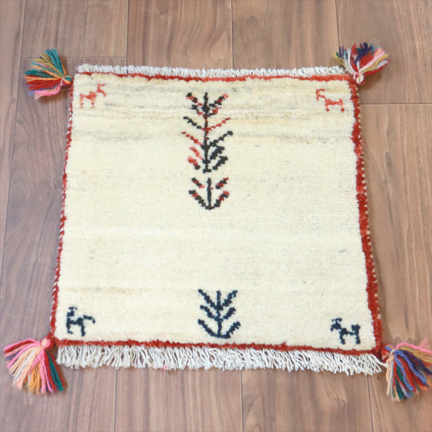 【15%OFF】ギャッベ イラン産手織り 座布団サイズ 38x40cm ナチュラルアイボリー
