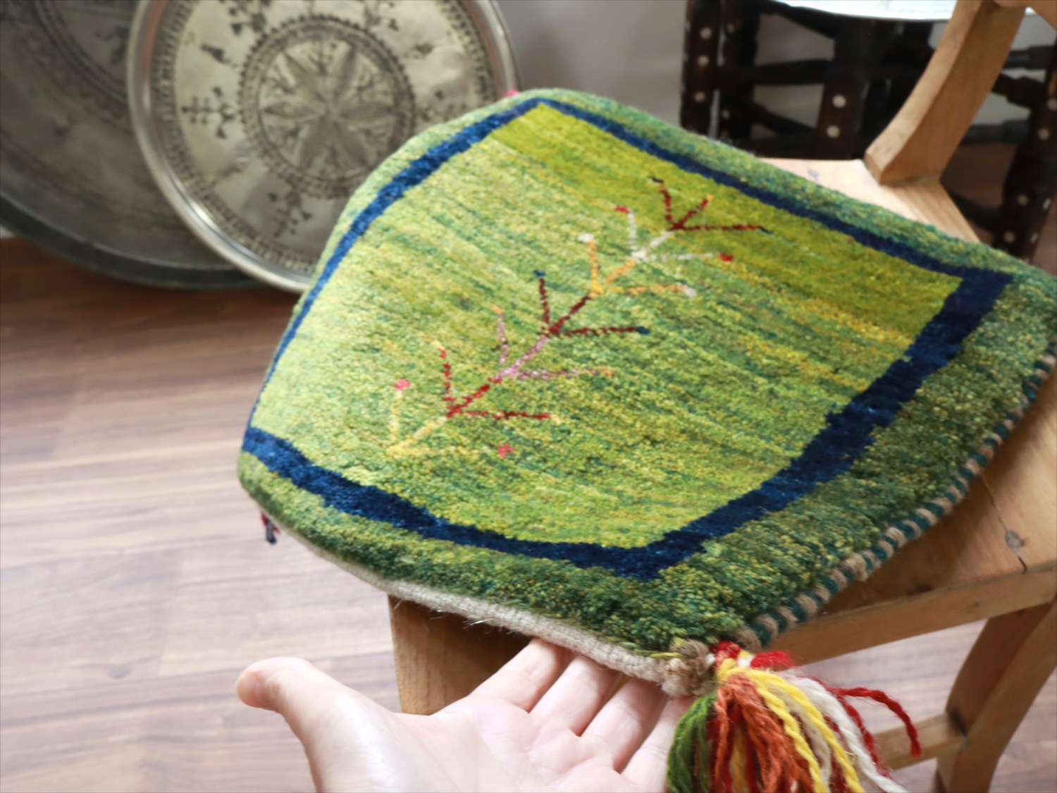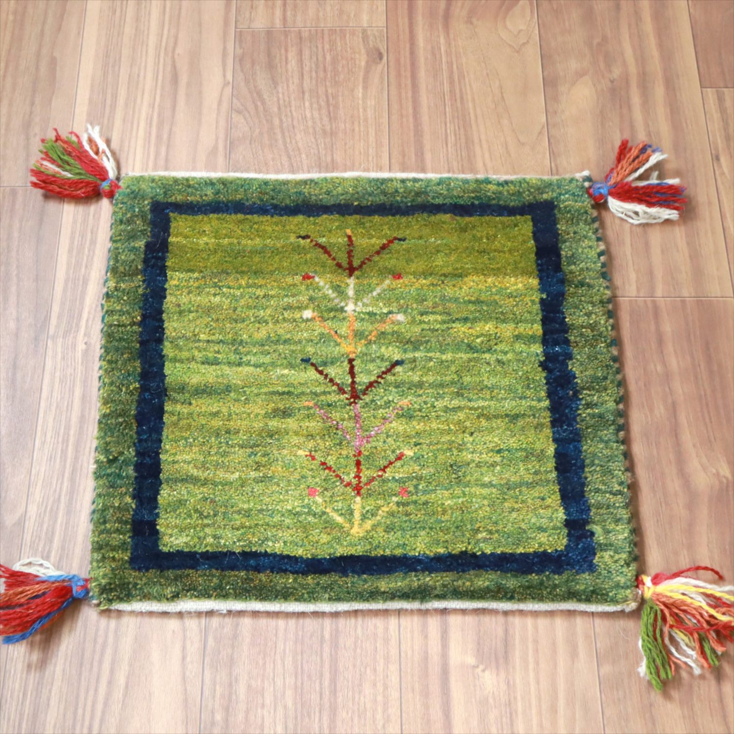 ギャッベ イラン産手織り 座布団サイズ 41x44cm グリーン
