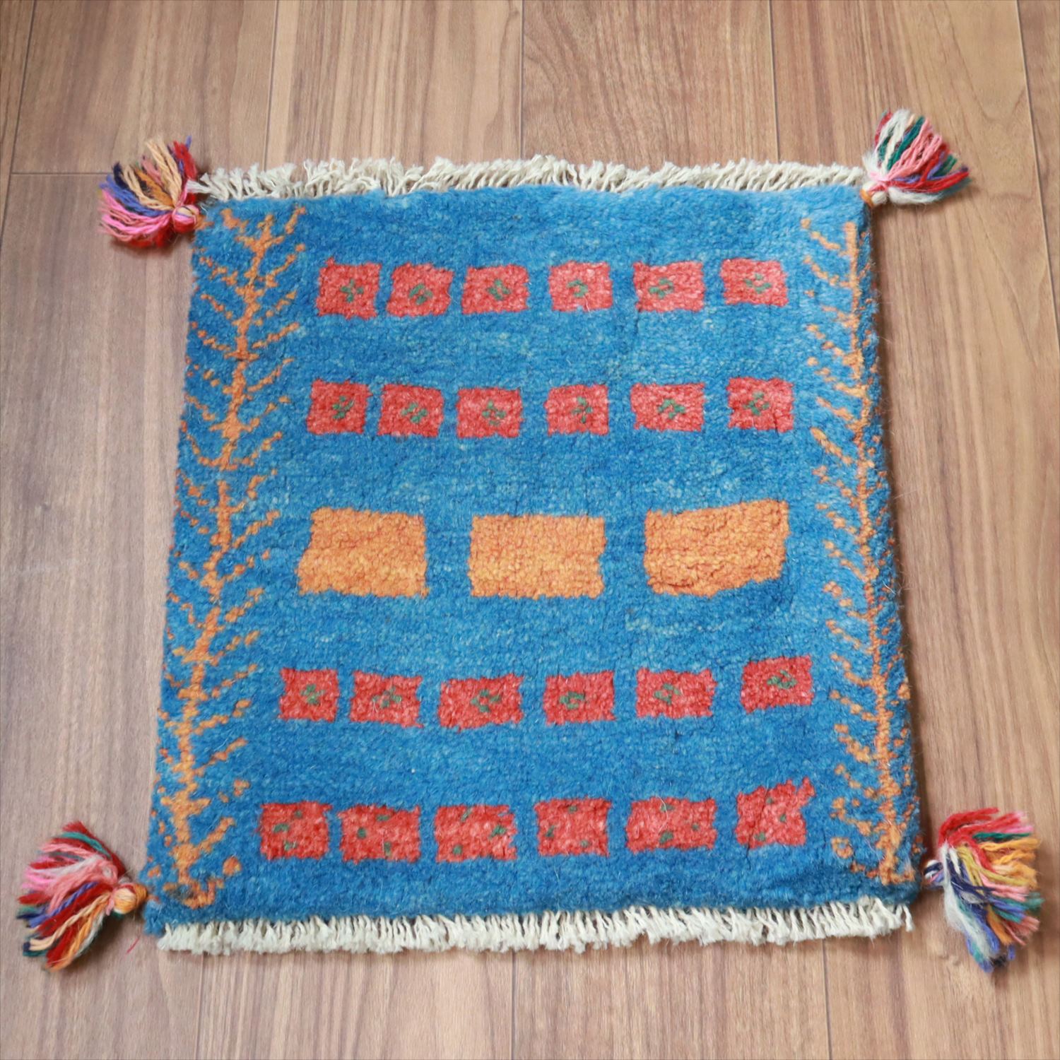 - ギャッベ イラン産手織り 座布団サイズ 41x38cm ブルー