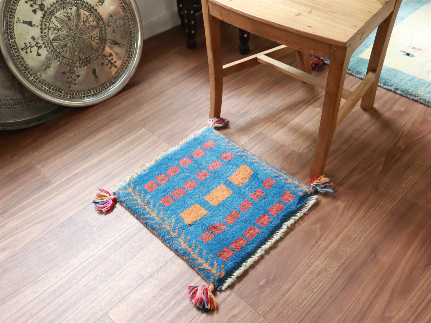 ギャッベ イラン産手織り 座布団サイズ 41x38cm ブルー