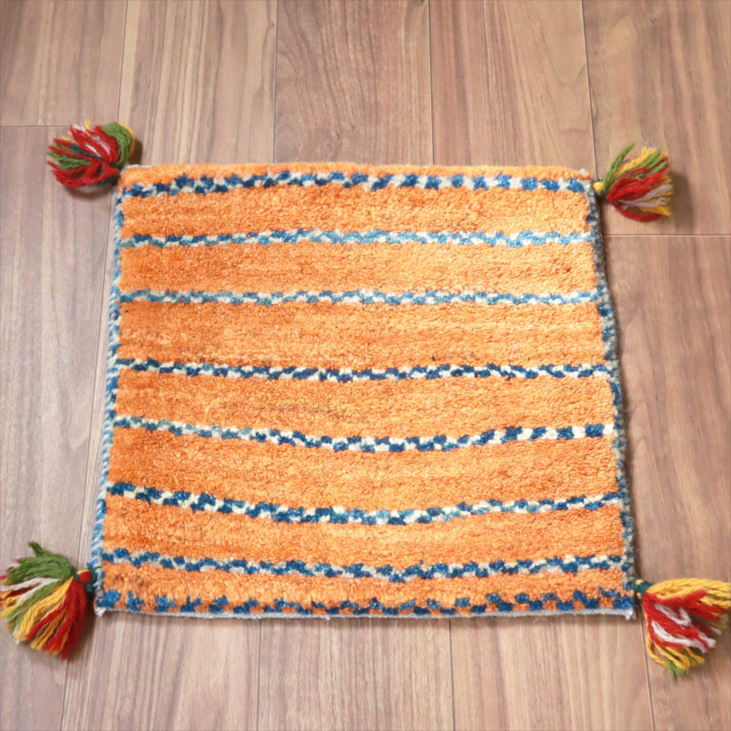 - ギャッベ イラン産手織り 座布団サイズ 42x44cm オレンジ