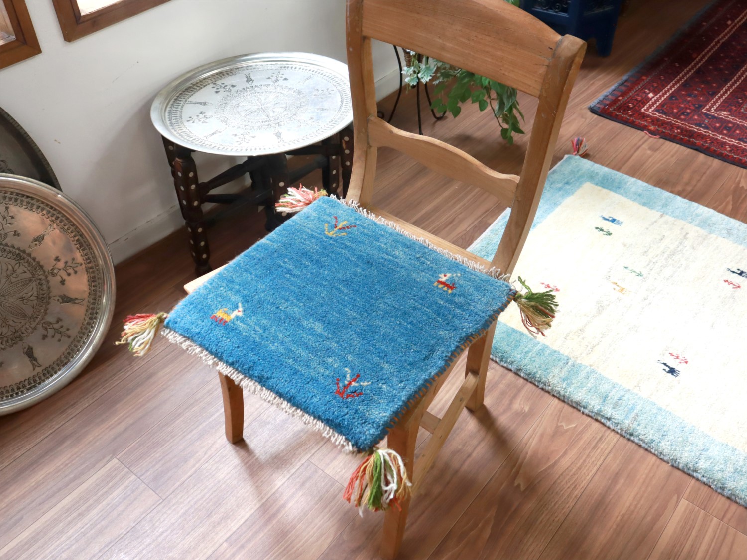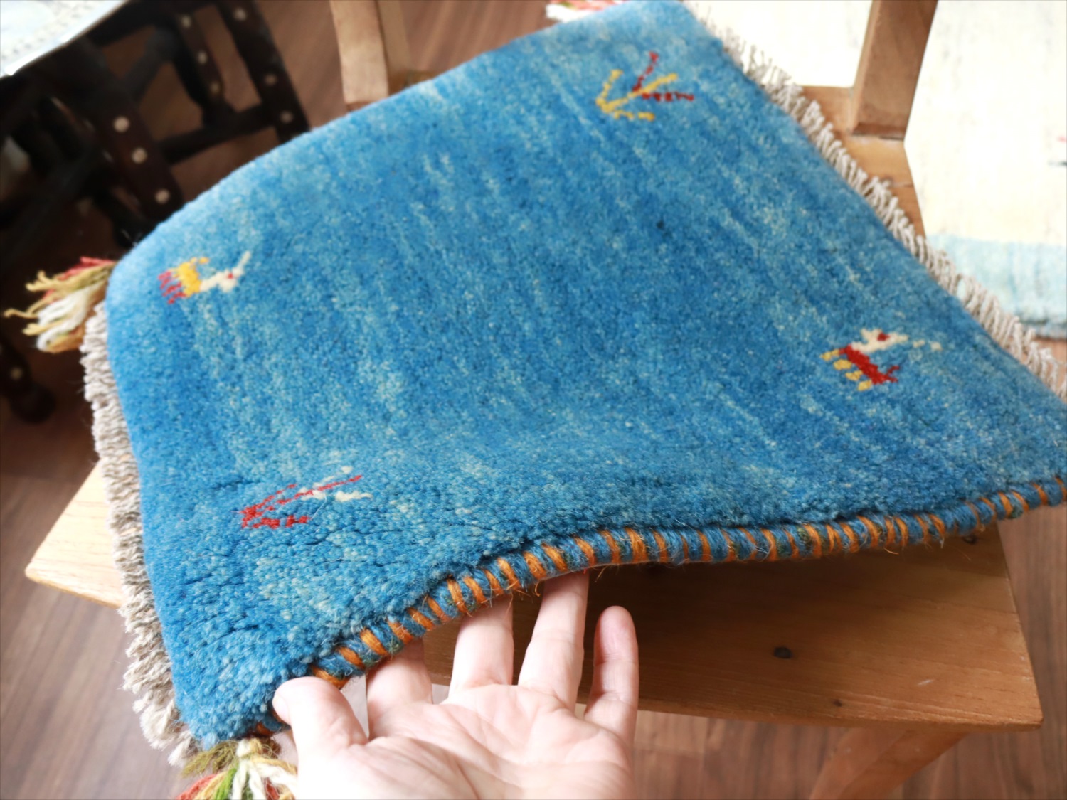 - 【15%OFF】ギャッベ イラン産手織り 座布団サイズ 39x40cm ブルー
