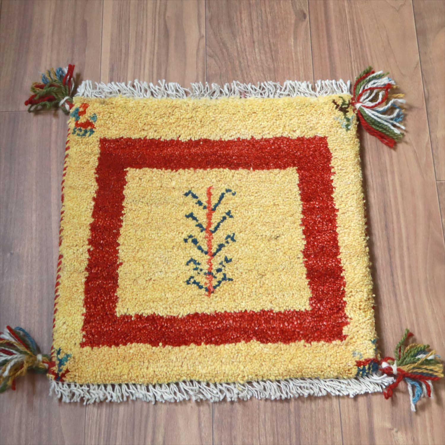 ギャッベ イラン産手織り 座布団サイズ 40x40cm イエロー