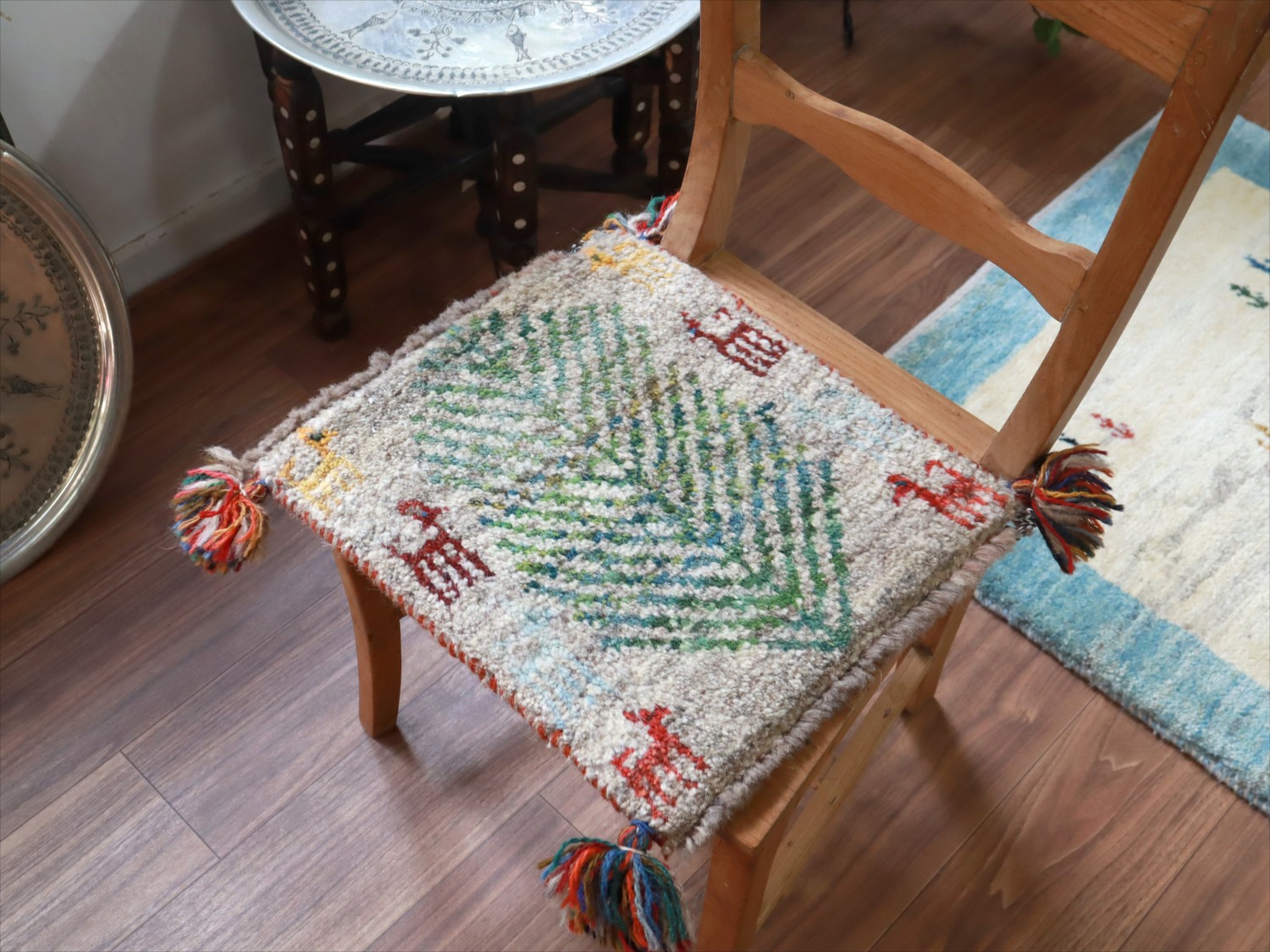 【15%OFF】ギャッベ イラン産手織り 座布団サイズ 39x36cm ナチュラルアイボリー