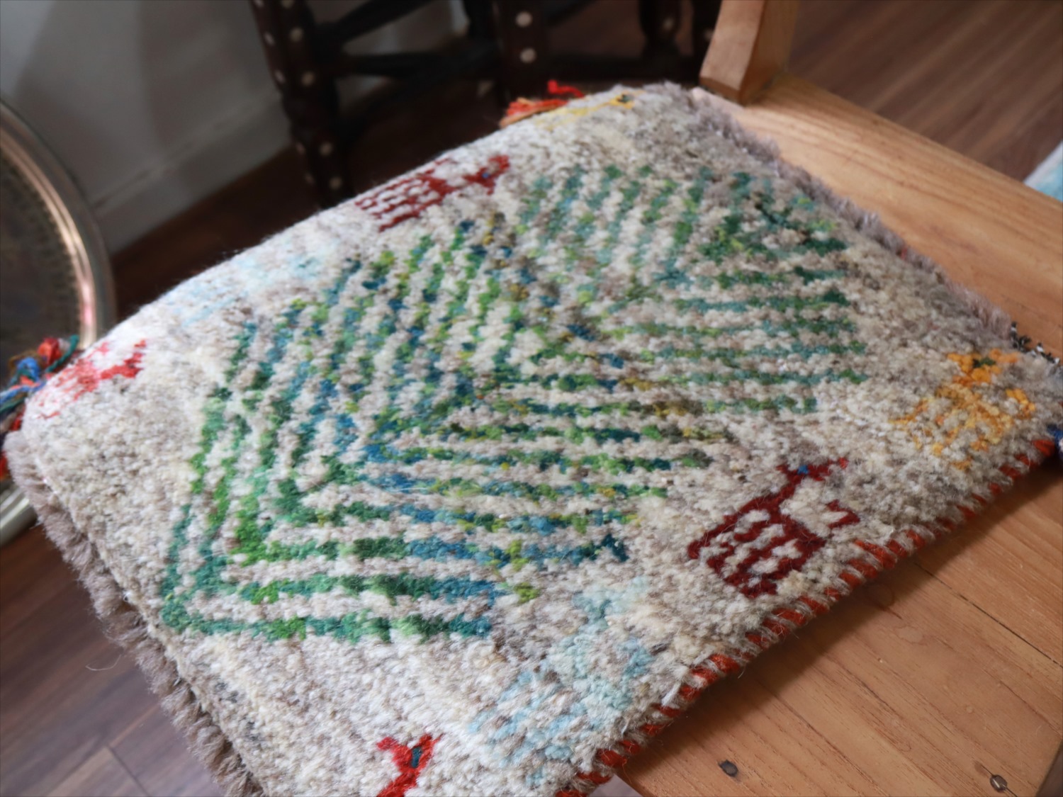 Key:ギャッベ ギャベ Gabbeh, イラン, 遊牧民, 手織り, 手紡ぎ, ペルシャ, 手織り絨毯, 座布団ギャッベ, ミニギャッベ, 無染色,アイボリー, 羊毛, グレー, ベージュ, 1点もの, 現品販売, ウール100%, 無染色 天然繊維 ミニギャベ, Gabbeh, Iran Persian rug, Hand Knotted, ガラタバザール