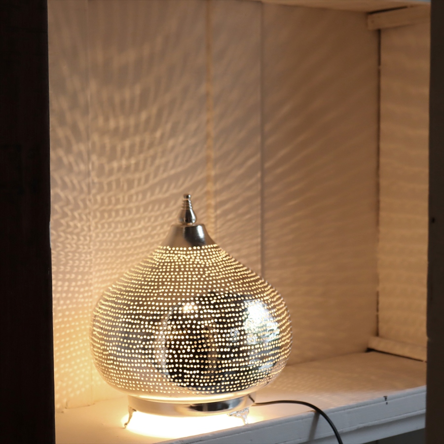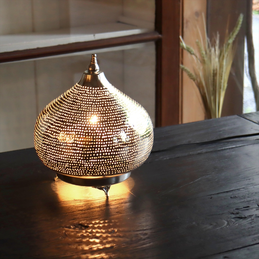 Key:モロッコランプ BOHO モロッコランタン メタルシェード ボヘミアンスタイル シルバー メタルランプ インダストリアル テーブルランプ テーブルライト 間接照明 室内照明 店舗照明 Morroco Lamp Egyptian lamp Egypt craftmanship