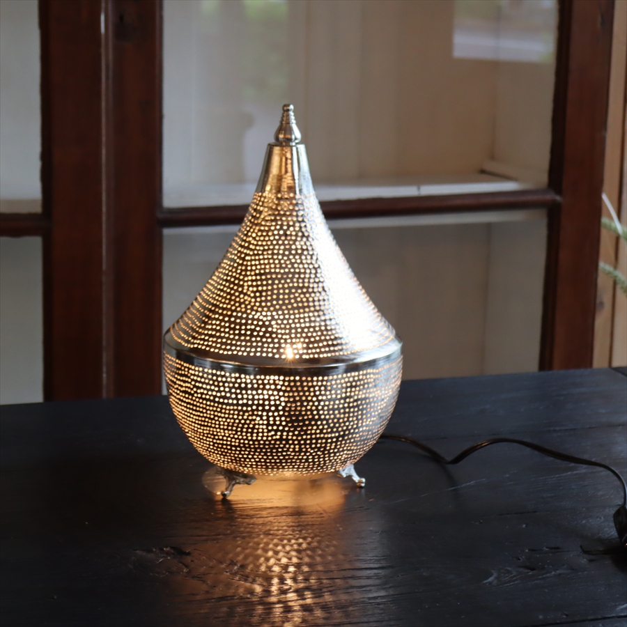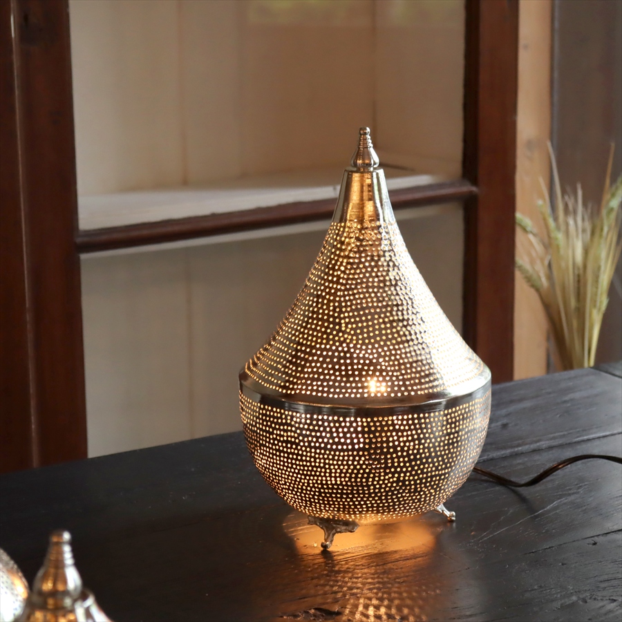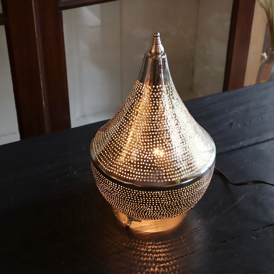 Key:モロッコランプ BOHO モロッコランタン メタルシェード ボヘミアンスタイル シルバー メタルランプ インダストリアル テーブルランプ テーブルライト 間接照明 室内照明 店舗照明 Morroco Lamp Egyptian lamp Egypt craftmanship