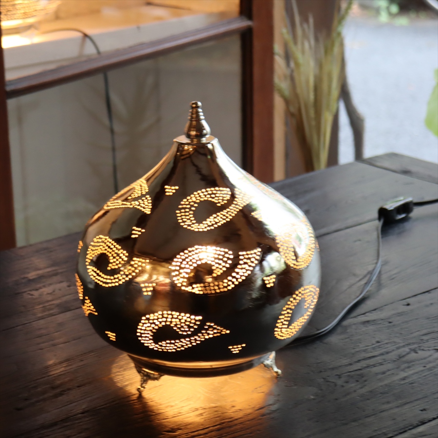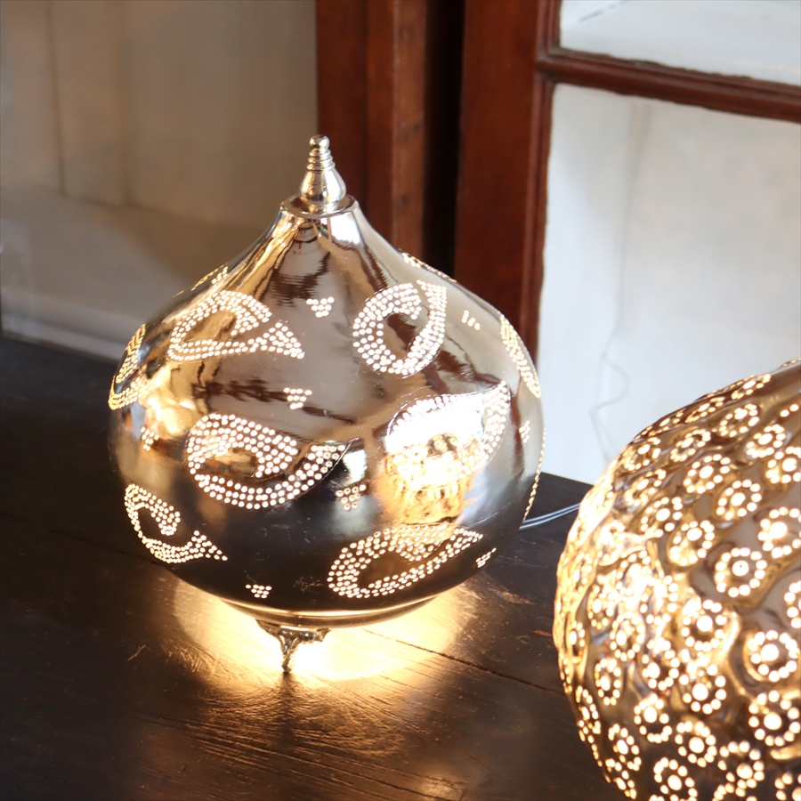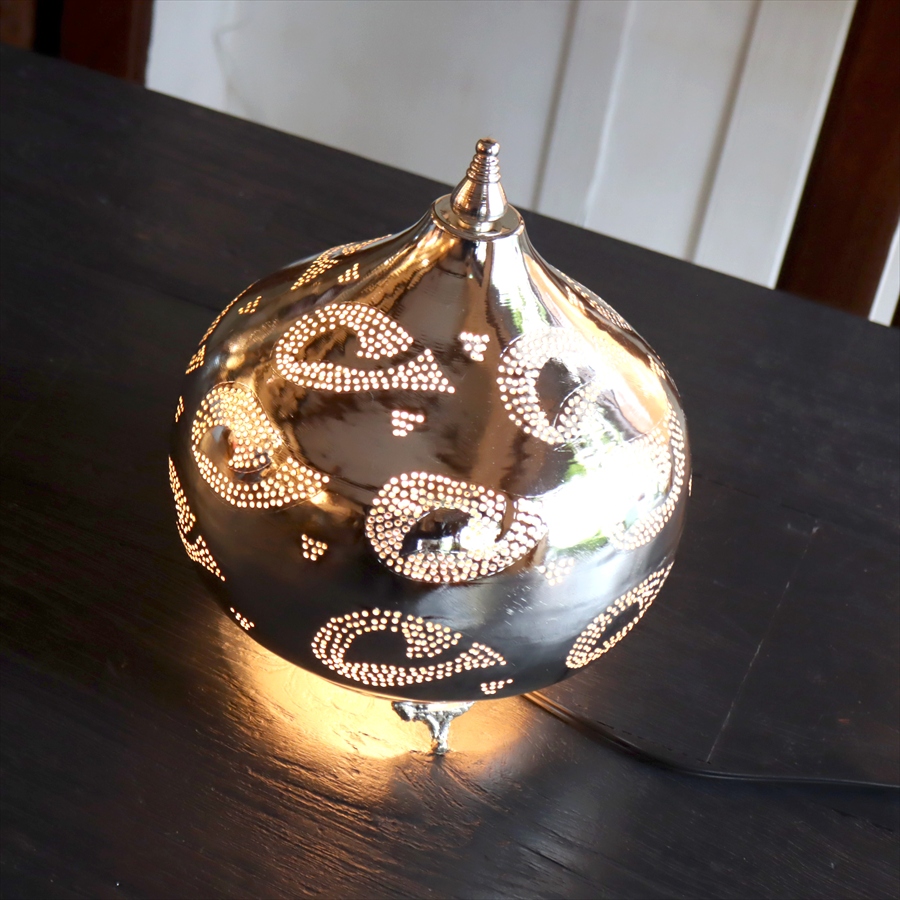 Key:モロッコランプ BOHO モロッコランタン メタルシェード ボヘミアンスタイル シルバー メタルランプ インダストリアル テーブルランプ テーブルライト 間接照明 室内照明 店舗照明 Morroco Lamp Egyptian lamp Egypt craftmanship
