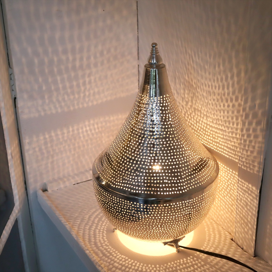 Key:モロッコランプ BOHO モロッコランタン メタルシェード ボヘミアンスタイル シルバー メタルランプ インダストリアル テーブルランプ テーブルライト 間接照明 室内照明 店舗照明 Morroco Lamp Egyptian lamp Egypt craftmanship
