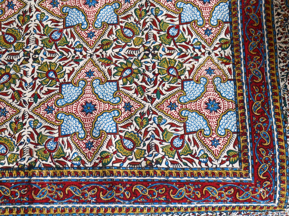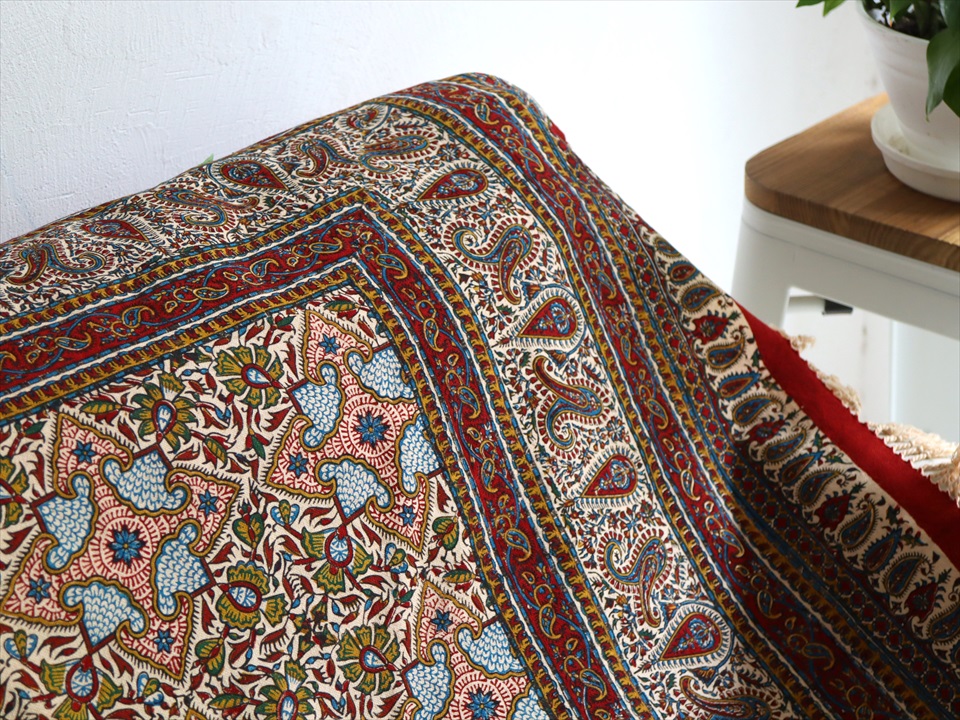 【15%OFF】ペルシャ更紗 イラン手染め布 196x132cm アンティークデザイン テーブルクロス ソファカバー