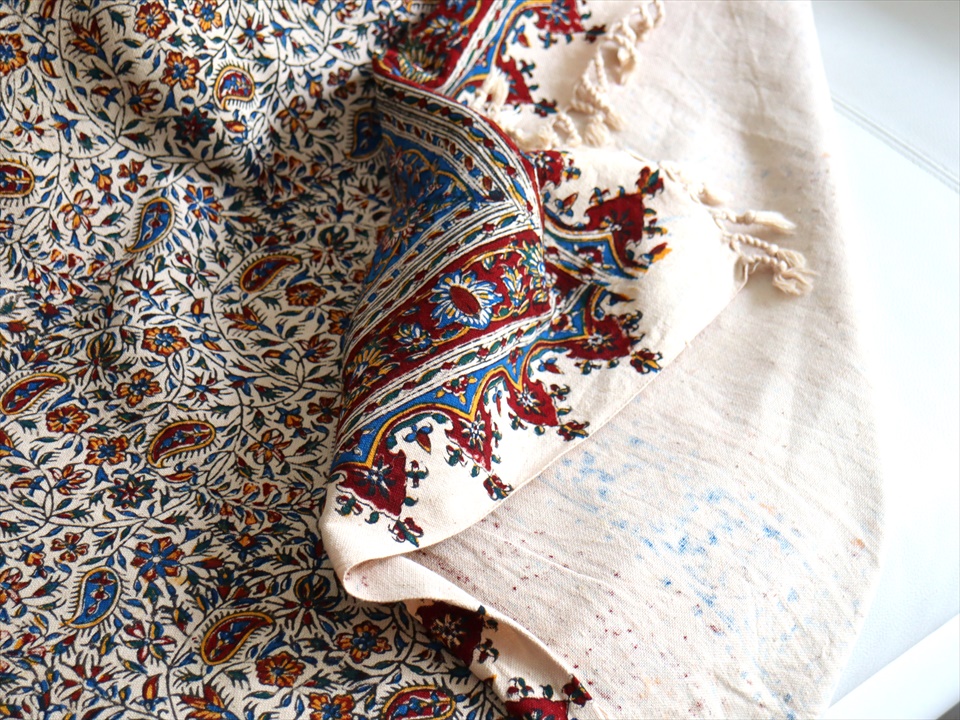 イランの古都イスファハンの工房で、職人さんが一点ずつ丁寧に染めています。生地はしっかりとした厚みのある綿100%の一枚布。