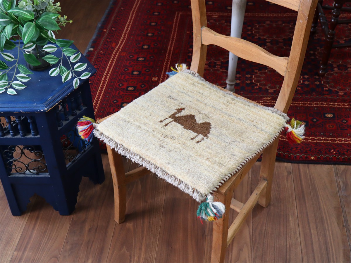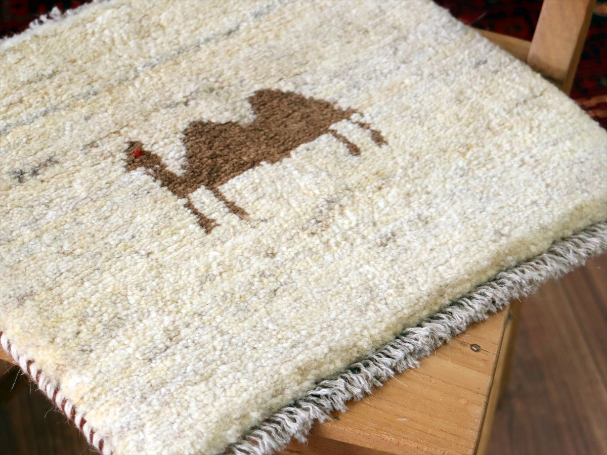 【15%OFF】ギャッベ イラン産手織り 座布団サイズ 36×40cm ナチュラルアイボリー ラクダ