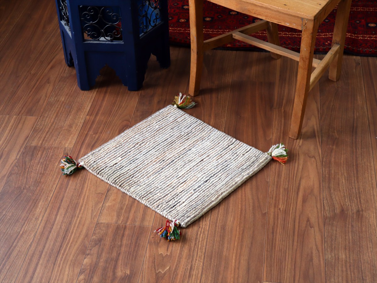 - 【15%OFF】ギャッベ イラン産手織り 座布団サイズ 40×40cm 染めていない羊毛 シンプルモダン