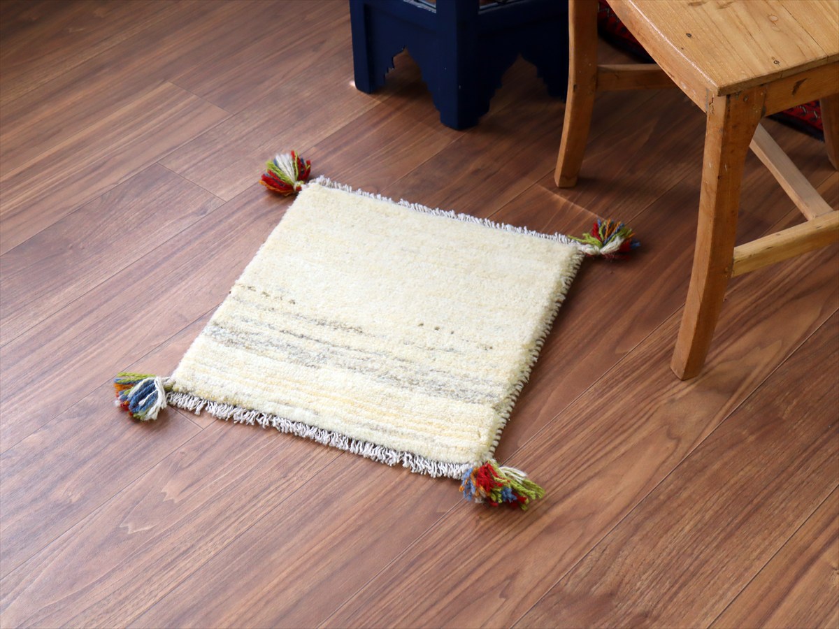 【15%OFF】ギャッベ イラン産手織り 座布団サイズ 40×40cm ナチュラルアイボリーグラデーション