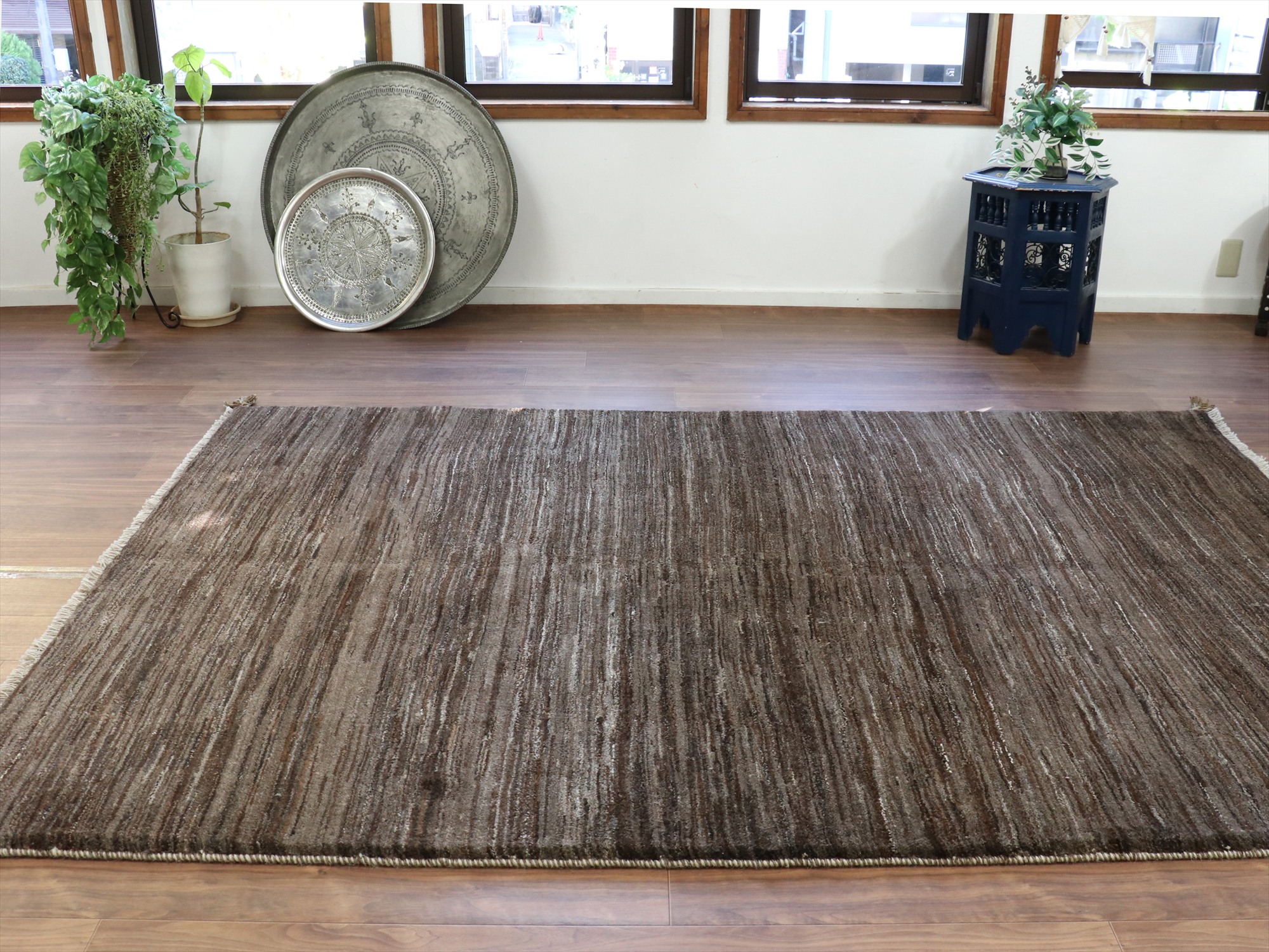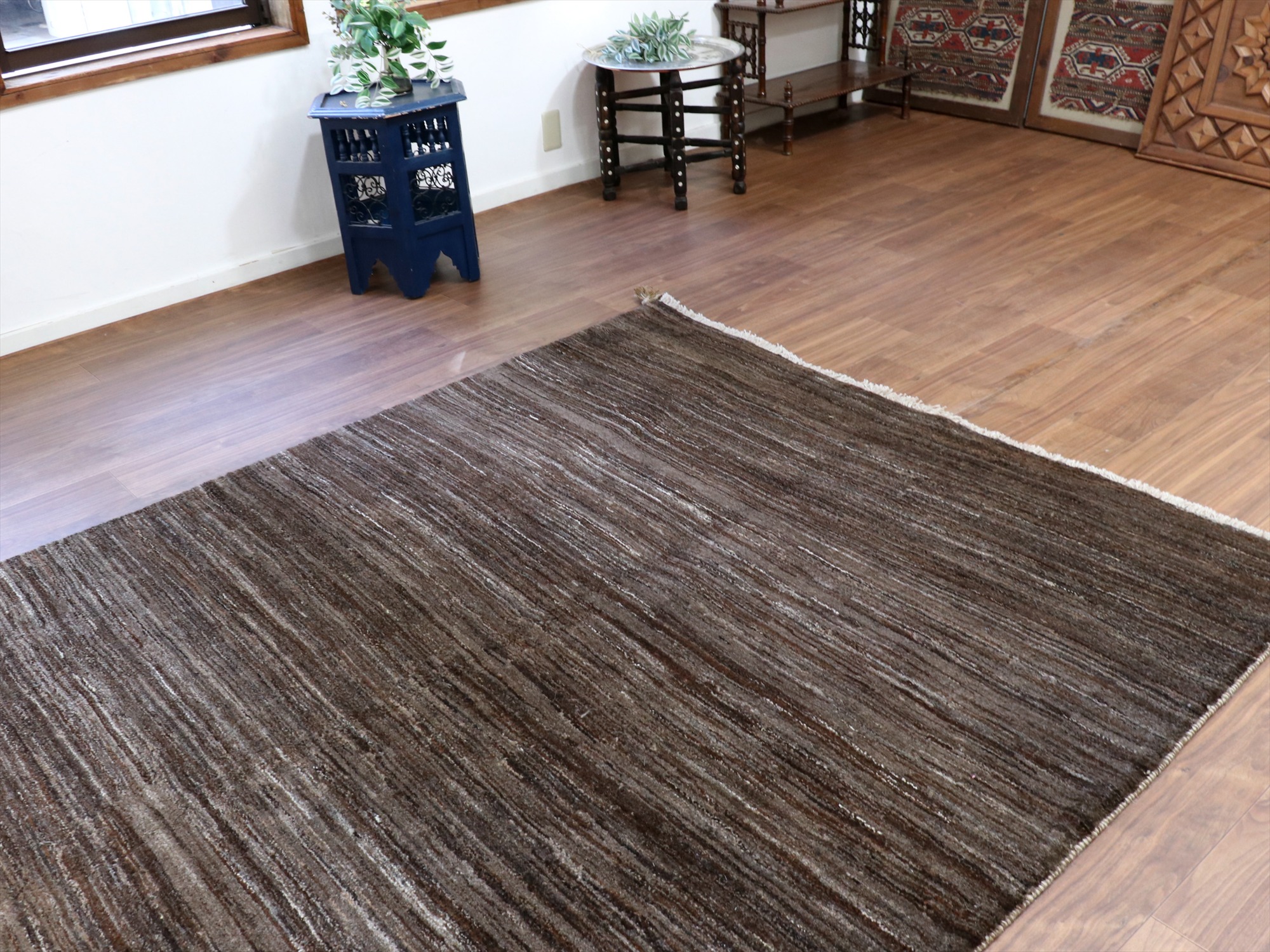 モチーフなしのギャッベをお探しの方におすすめです。モダンなカッコよさと手織りの質感が際立つ一枚です。