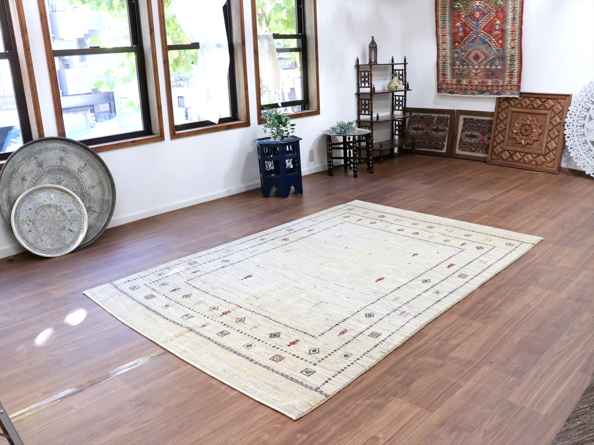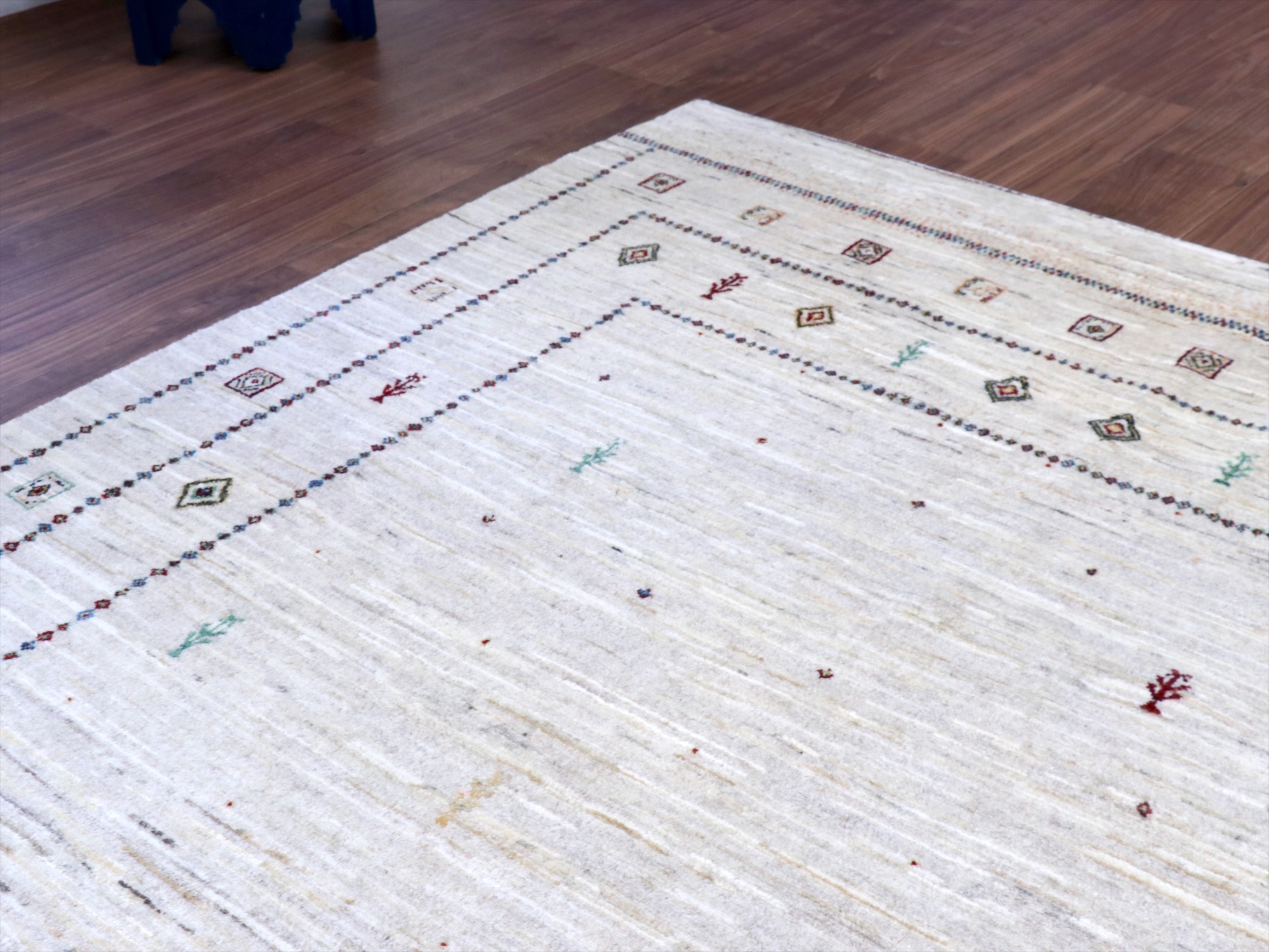 - 【15%OFF】ギャッベ イラン 手織り リズバフト 細かな織り 234x164cm 無染色のアイボリー 生命の木モチーフ