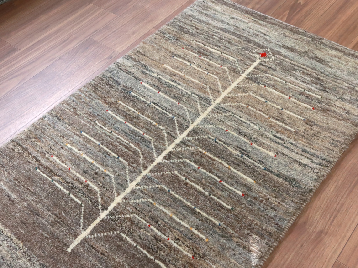 - 【15%OFF】ギャッベ イラン 手織りラグ 119x76cm Gabbeh Nomad 無染色のグレー 生命の木