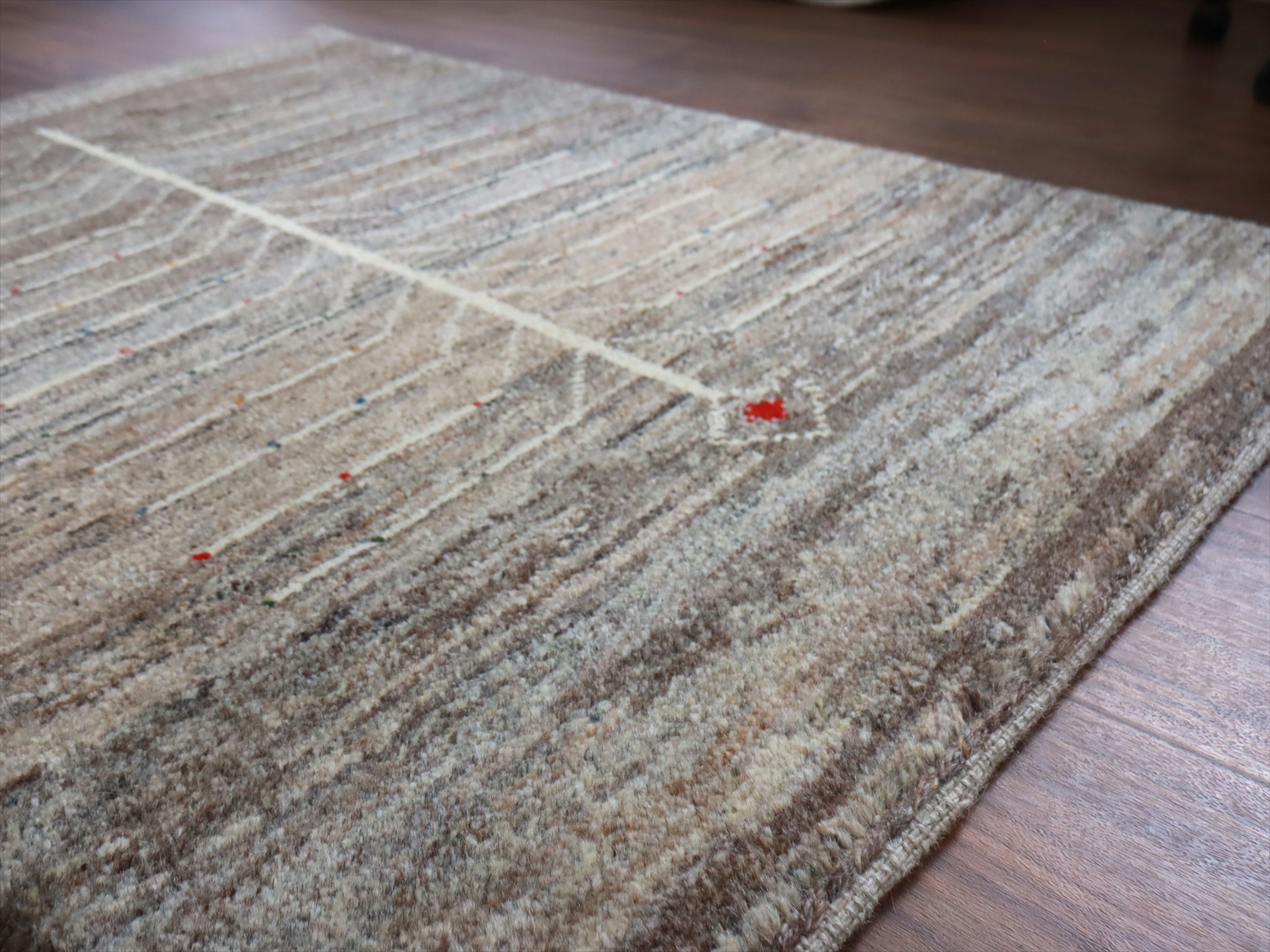 【ギャッベ・ノマド - Gabbeh Nomad -】遊牧民を意味するノマドと名付けられたギャッベ・コレクション。元来、ギャッベとは、毛足の長いラグを意味し、このクラスの織りの織物のことをいいます。ふかふかした厚みがあります。じゅうたんの結び目は10cmの間に20~25目ほどで、ギャッベの中で最もベーシックな織りのグレードです。デザインは、遊牧民本来の自由な感性や、長く織り継がれてきた伝統を生かしたものが多く、シンプルな単色のものからカラフルなタイル柄など、様々なデザインが織られています。ヤギやヒツジなどの動物、生命の樹などの定番モチーフが織り込まれていることが多く、一般的にイメージされる「ギャッベらしさ」が一番感じられるスタンダードなクラスです。