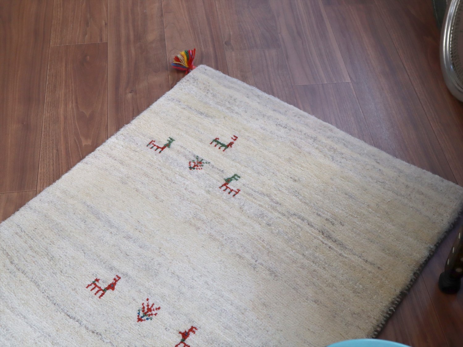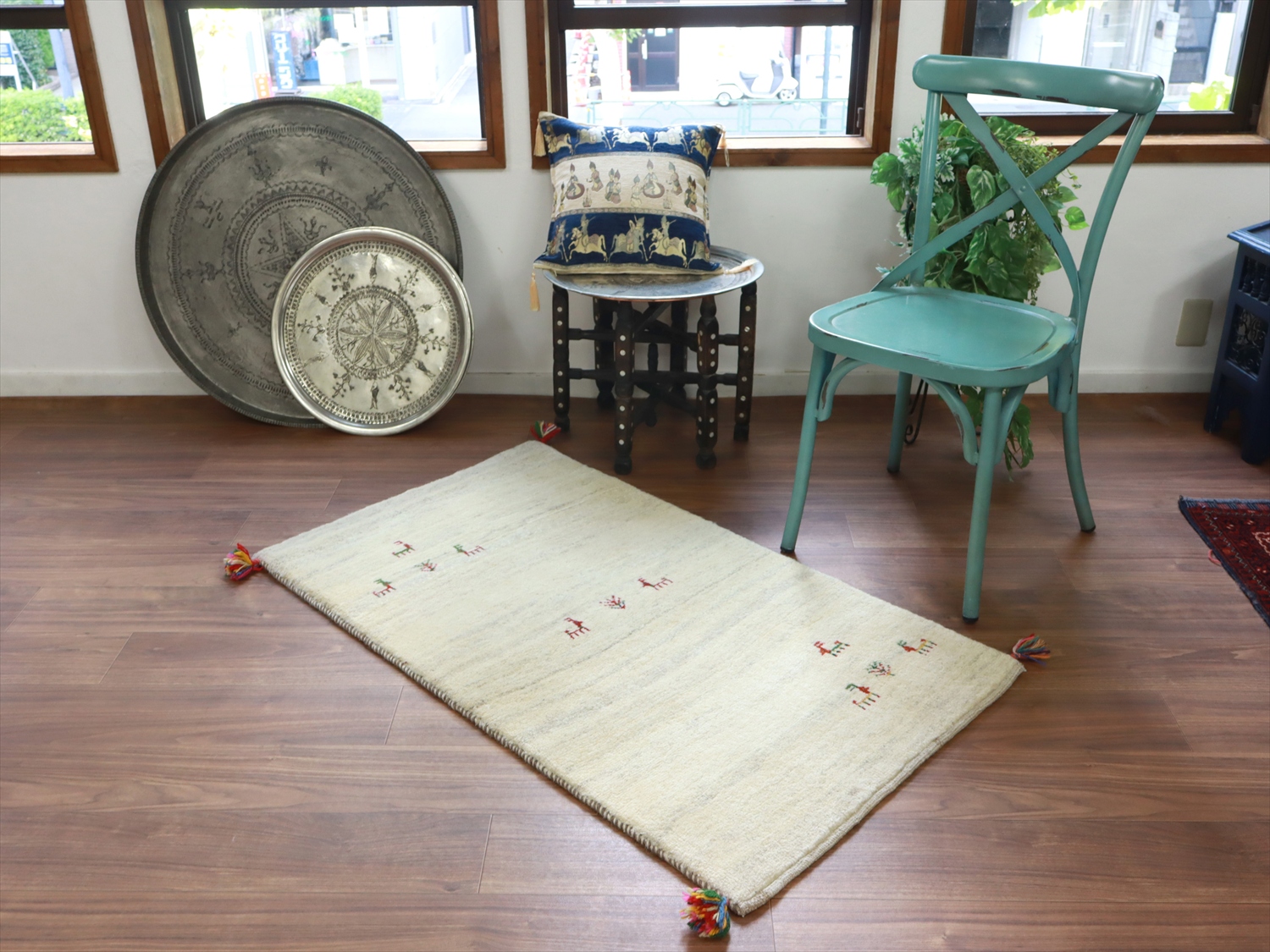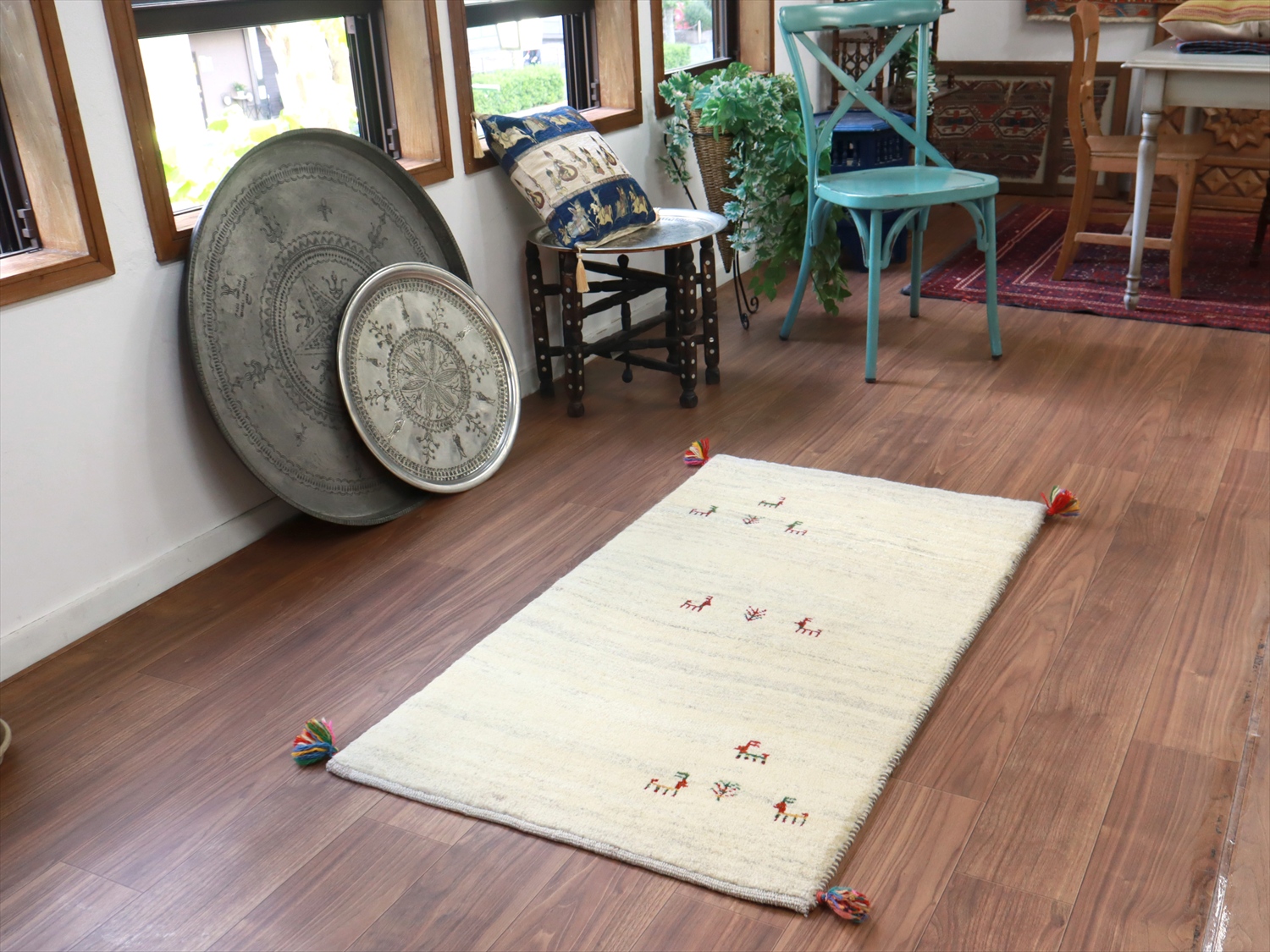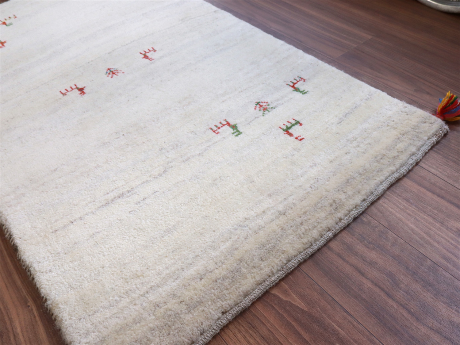 - 【15%OFF】ギャッベ イラン 手織りラグ 127x74cm ナチュラルアイボリー 動物モチーフ