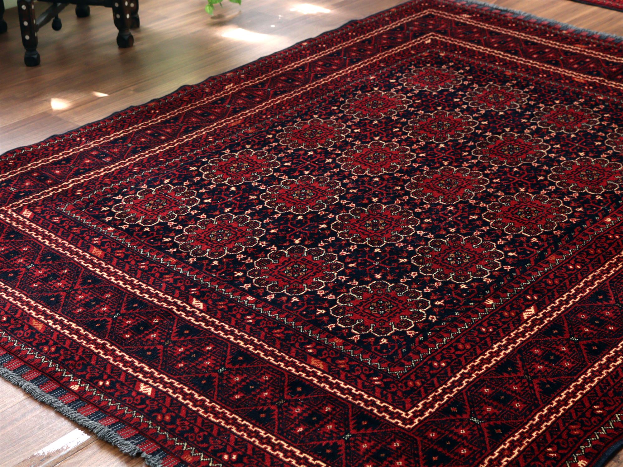 - アフガニスタン産 手織り絨毯195×150cm クンドゥズ Kunduz ビロードのようなツヤのある緻密な織り