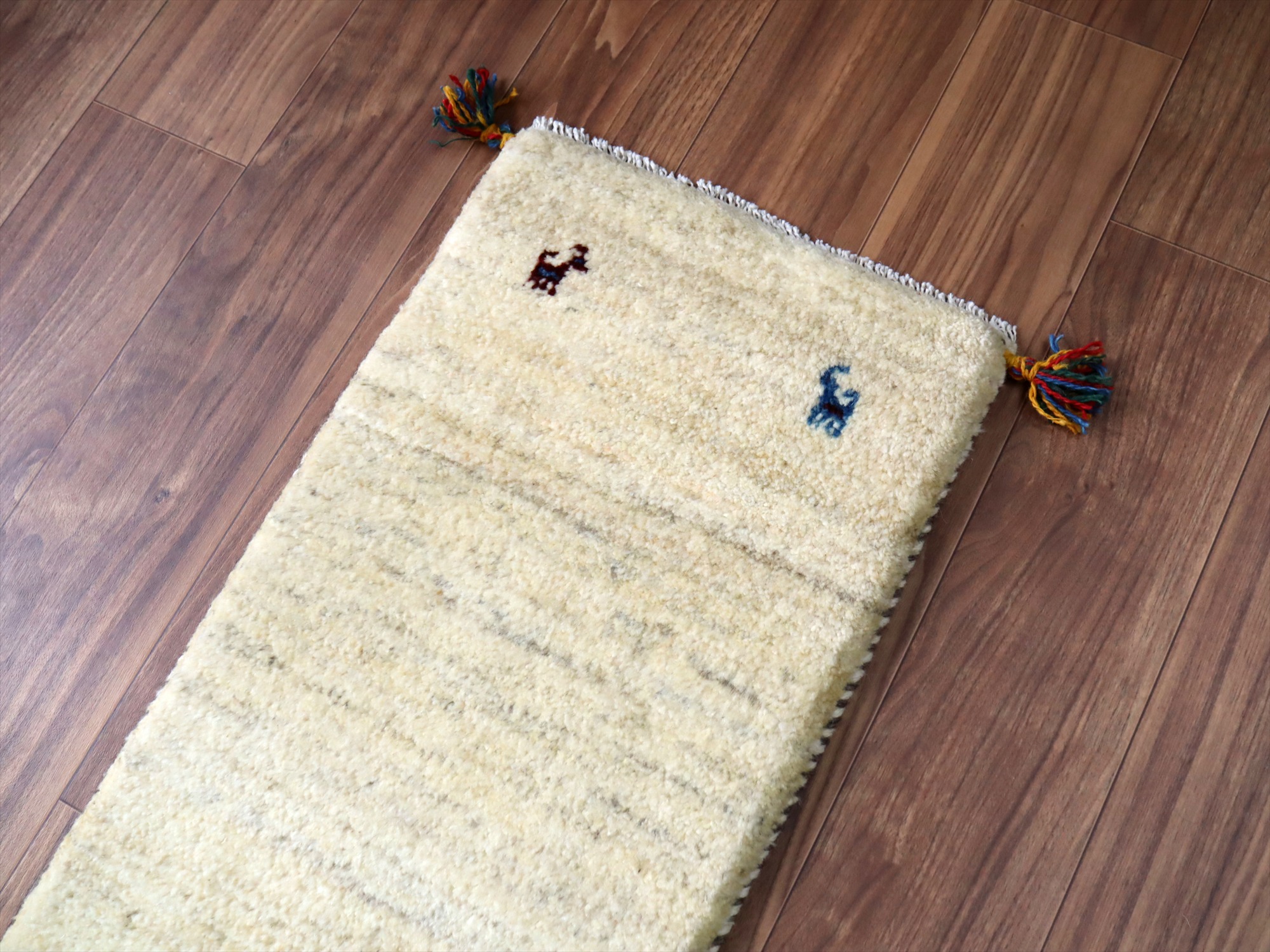ギャッベ イラン 手織り ミニランナー 117x40cm ナチュラルアイボリー 羊毛 シンプル 無地