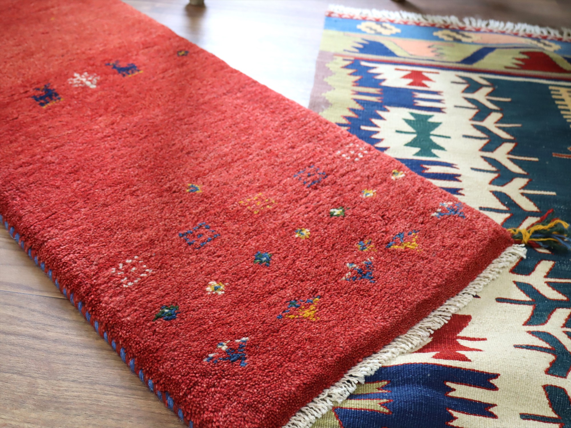 Key:ギャベ, ラグ, 手織り絨毯, 部族絨毯, 草木染, カシュカイ族, ウール製, キッチンマット, ベッドサイド, レッド, 東京,中野区, ガラタバザール, Gabbeh, Tribal Rug, Hand knotted, wool, Natural dye, Shiraz, Fars, Quashkai