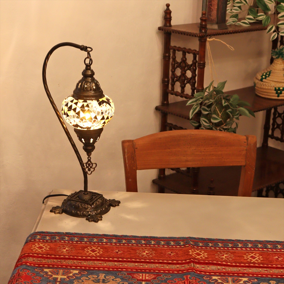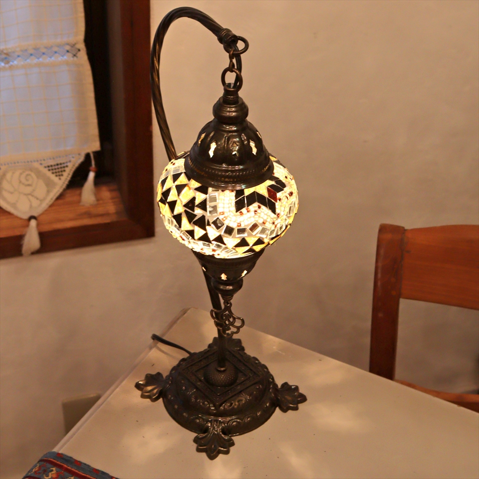 トルコで1つ1つ手作りされた、モザイクのガラス球が使われたテーブルランプ。