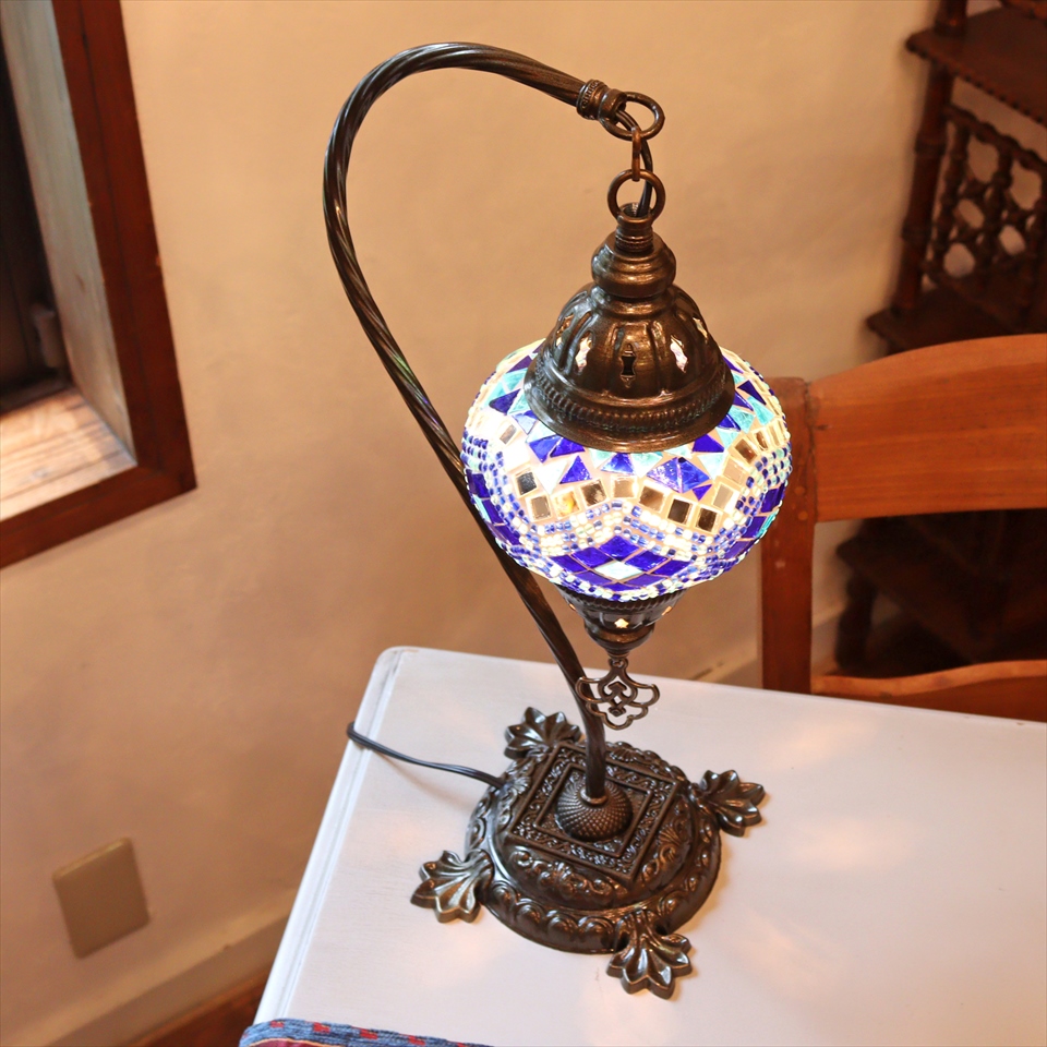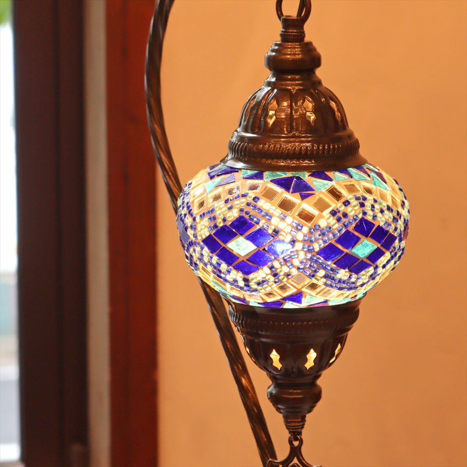 - トルコランプ モザイクテーブルランプ ハンギング 全高42cm 横幅23cm ブルー
