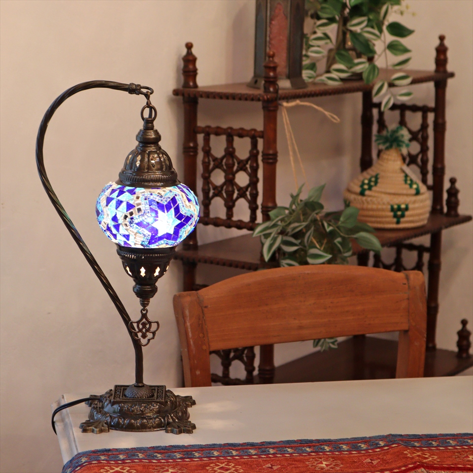 - トルコランプ モザイクテーブルランプ ハンギング 全高42cm 横幅23cm ブルー