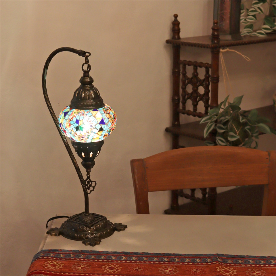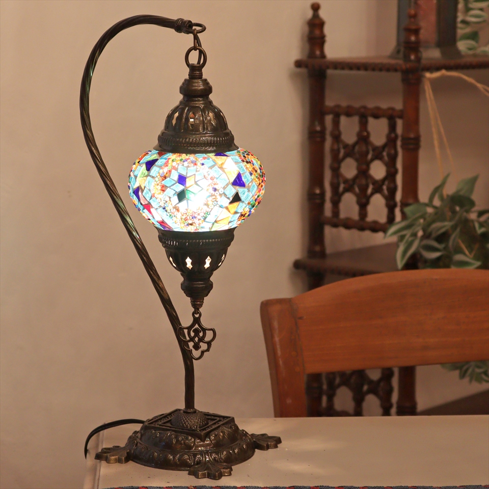 - トルコランプ モザイクテーブルランプ ハンギング 全高42cm 横幅23cm ブルー